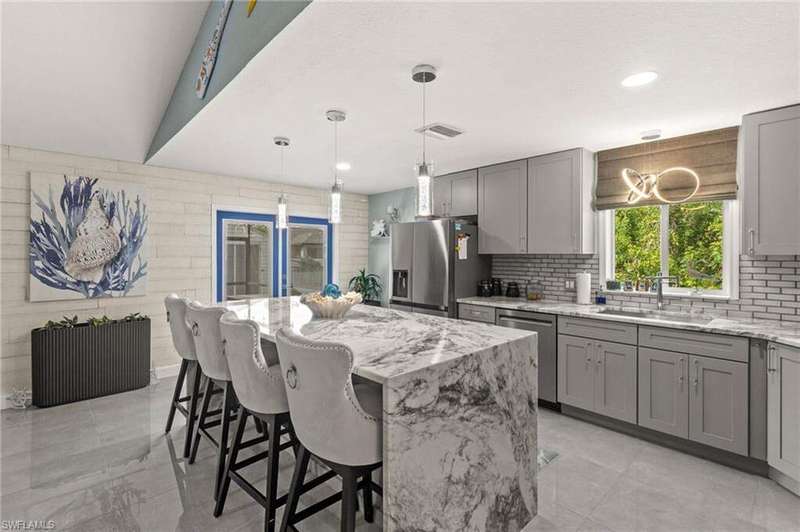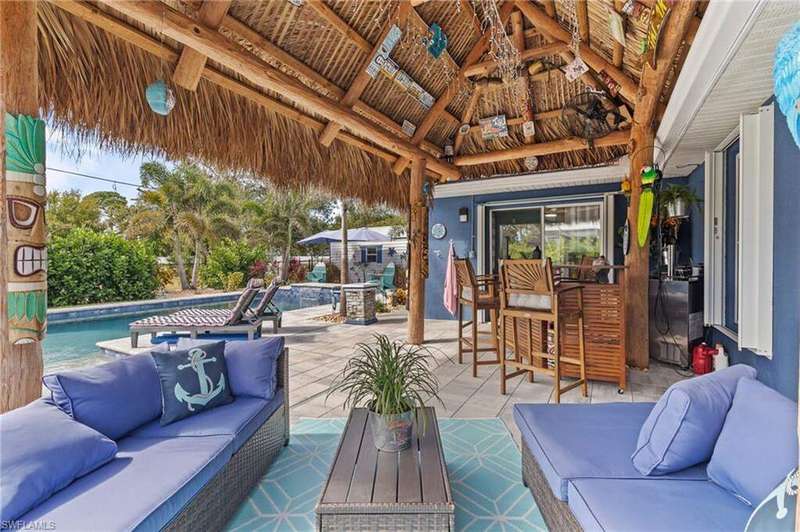 Discover the ultimate Florida lifestyle in the desirable Gulf Cove community! This meticulously upgraded residence offers optional membership to the Property Owners of Gulf Cove (POGC) for a nominal annual fee, granting exclusive access to a private boat ramp, serene park, and an array of social events and clubs. Perfectly positioned just minutes from Englewood Beach and historic Boca Grande, with abundant local shopping and dining at your fingertips, baseball enthusiasts will love the proximity to Atlanta Braves and Tampa Bay Rays Spring Training stadiums, while endless outdoor adventures await-fishing, boating, hiking, shelling, and shark tooth hunting-all within a few miles. Step into luxury with no expense spared in this fully renovated gem, featuring a gourmet kitchen with a stunning waterfall island with new counter tops, and extra deep cabinets that are 28 1/2 instead of the average 24 depth as well as new appliances, pot filler over the stove, new flooring throughout, and fresh paint inside and outside, complemented by a brand-new roof and windows. The opulent primary suite boasts a spa-like bathroom with an extra-long jetted tub, while the custom 18 x 13 tiki hut overlooks a resort-style 18 x 30 pool with an expansive 10 x 10 sun deck as your own private getaway to relax and enjoy. This home also has a NEW SEPTIC TANK AND NEW DRAINFIELD! A private backyard oasis is enhanced by fresh landscaping and exterior paint, complete with a detached storage building and convenient side dog run-every detail has been perfected, and your dream home awaits!