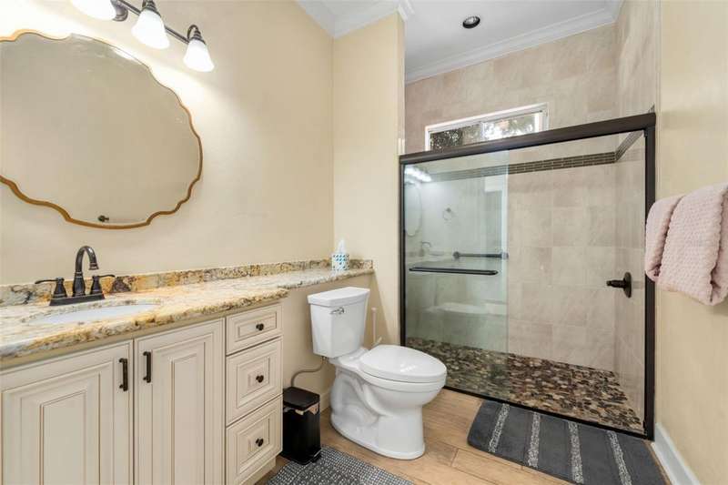 Nestled among the Live Oaks in the prestigious gated community of Splitrail, this stunning 4-bedroom (plus office), 3.5-bathroom custom-built home sits on 1.5 acres of beautifully landscaped grounds, offering a peaceful retreat like no other. The community's exclusivity, with just 11 unique homes, ensures an intimate and distinctive living experience. A sweeping circular driveway leads to garage parking for four cars, featuring both an attached two-car garage and a standalone two-car garage, providing endless possibilities. Inside, the chef's dream kitchen boasts stainless-steel appliances, a spacious center island, granite countertops, and a large gas range, connecting seamlessly to the living and family rooms for easy entertaining. Hardwood floors grace most of the home, with cozy carpet in the bedrooms and elegant ceramic tile in the wet areas. The private backyard oasis is a true highlight, featuring a screened-in saltwater pool and spa surrounded by lush natural beauty, perfect for enjoying tranquil days. The oversized Owner's Suite offers a personal sanctuary with a bedroom area complete with a fireplace, a secondary space ideal as an office or reading nook. The primary bathroom has been updated to an elegant spa-like feel with a glass enclosed shower and separate soaking tub, double sinks with storage cabinetry and double walk-in closets. Three additional bedrooms provide versatility for extra living space or guest accommodations. One of the bedrooms has its own entrance and adjacent full bath. Roof replaced in 2023. Other updates include water heater 2023, HVAC 2017 and 2018, Septic serviced in 2022, pool heater and saltwater system 2023. Other convenient facts: central vacuum system, electric car charger wiring in the garage, generator connection in the garage. This home is more than a residence; it's a serene haven where indoor and outdoor living come together in perfect harmony. Currently zoned for Hidden Oak elementary, Ft. Clarke middle school and Buchholz high school.