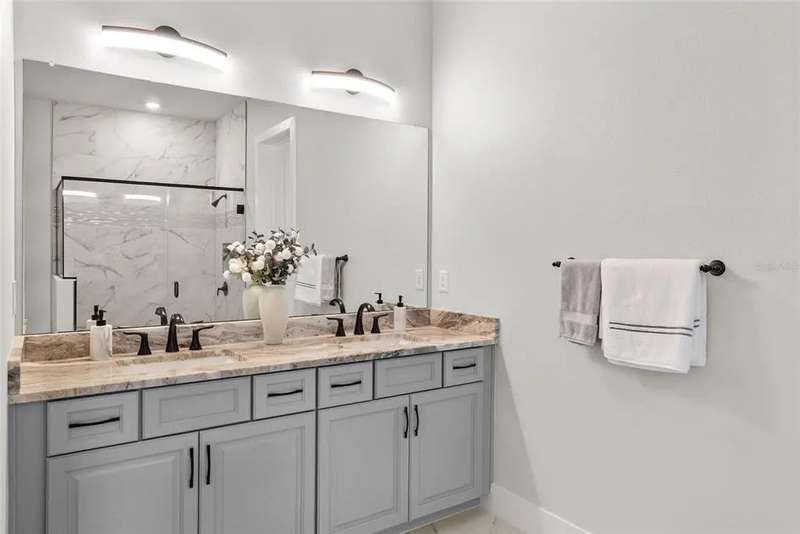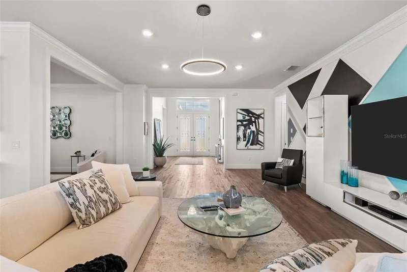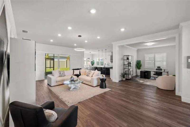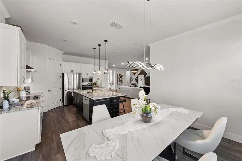 Welcome to 8261 Ivy Stark Boulevard, a stunning like-new residence crafted by premier luxury builder Biscayne Homes, offering nearly 2,500 square feet of beautifully designed living space. This 3-bedroom, 2.5-bath home with a 3-car garage perfectly blends timeless elegance with modern sophistication—set within the sought-after, resort-style community of Epperson, home to Wesley Chapel’s first crystal-clear man-made lagoon and vibrant social scene. From the moment you arrive, the attention to detail is undeniable. The brick paver driveway and patio, freshly sealed for a polished finish, are framed by upgraded landscaping, creating a grand first impression. Inside, you’ll find soaring ceilings, custom moldings and woodwork, and luxury vinyl flooring that flows seamlessly throughout. The home has been freshly repainted and showcases elevated designer lighting and custom plantation shutters, enhancing its bright, airy feel. At the heart of the home is a fully upgraded chef’s kitchen featuring quartz countertops, an oversized island, a full-sized pantry, and premium stainless-steel appliances—perfect for entertaining. The kitchen opens to an expansive living area and an inviting eat-in dining space, while a separate formal dining room (or private office) offers flexibility to suit your lifestyle. Relax and unwind on the screened-in lanai, ideal for year-round Florida living. Additional luxury upgrades include a whole-home Culligan water softener for ultimate comfort and convenience. Beyond your doorstep, the Epperson community offers an unmatched resort experience—complete with its award-winning lagoon, sandy beaches, swim-up bar, and year-round events. All of this is perfectly positioned just minutes from Wesley Chapel’s best shopping, dining, and entertainment, with easy highway access for a quick commute to downtown Tampa.8261 Ivy Stark Boulevard is more than a home—it’s a statement of refined Florida living. Experience the best of luxury, lifestyle, and location in one extraordinary property.
