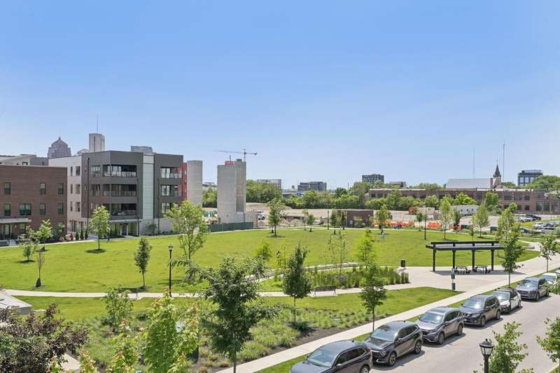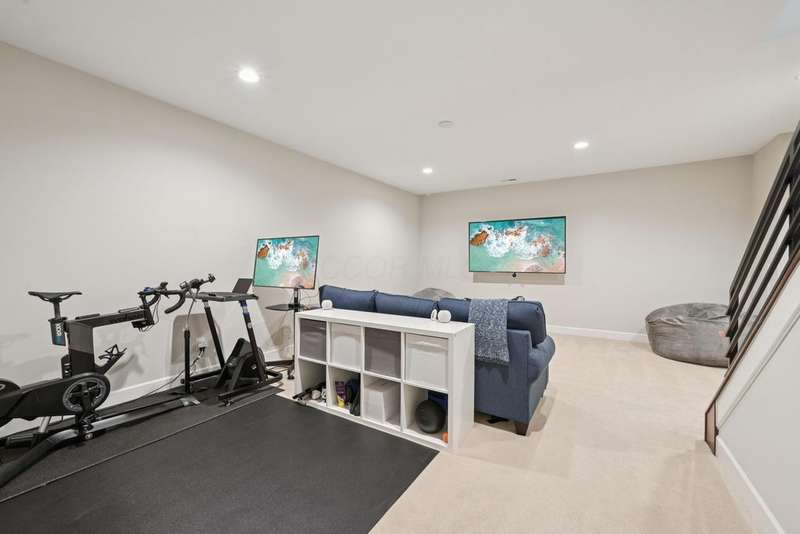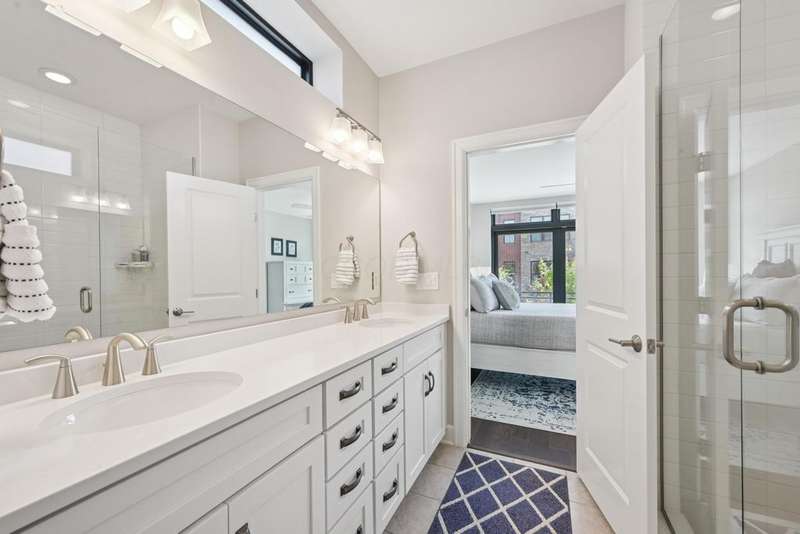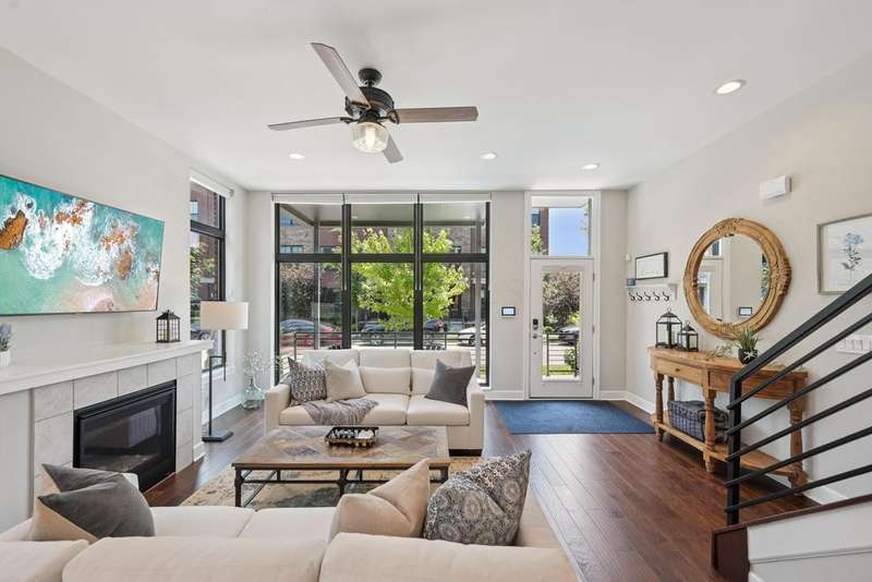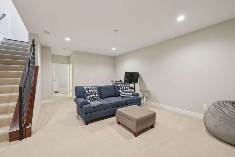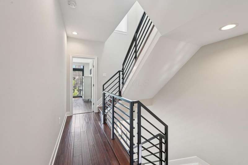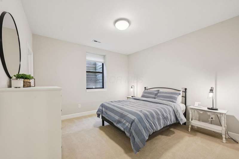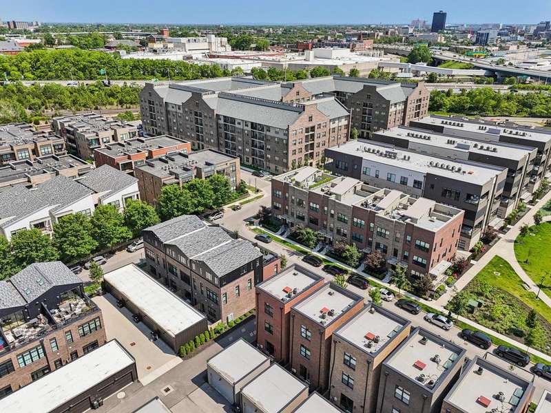 OPEN HOUSE! 9/20,1-3PM. This rare BRIGHT, end unit-with NO SHARED WALLS, has light shining brightly with wonderful views! FOUR LEVELS are finished spaces for you to appreciate including THREE w/ OUTSIDE SEATING. The FIRST FLOOR includes an open concept living room with a fireplace, chef's kitchen, granite countertops, modern stainless-steel appliances, and half bath. The SECOND FLOOR offers a private balcony with relaxing views. from the primary suite, an en suite bathroom with a dual vanity quartz countertop, spa-like shower, two huge walk-in closets. The laundry room, and a second bedroom or office down the hallway. The THIRD ROOFTOP FLOOR boasts a flex space for a bedroom, relaxing or entertaining, a full bathroom, a wet bar, and an outside lounge area-with a remote retractable awning and a view of the city skyline.The LOWER LEVEL provides yet another large room to entertain with, a bedroom, and a full bathroom. Everything you'd want in a community is available for you: Clubhouse, pools, state-of-the-art gym, coffee house and more... Enjoy LUXURY URBAN LIVING here- close to all that Columbus has to offer. *TAX ABATEMENT