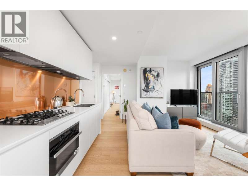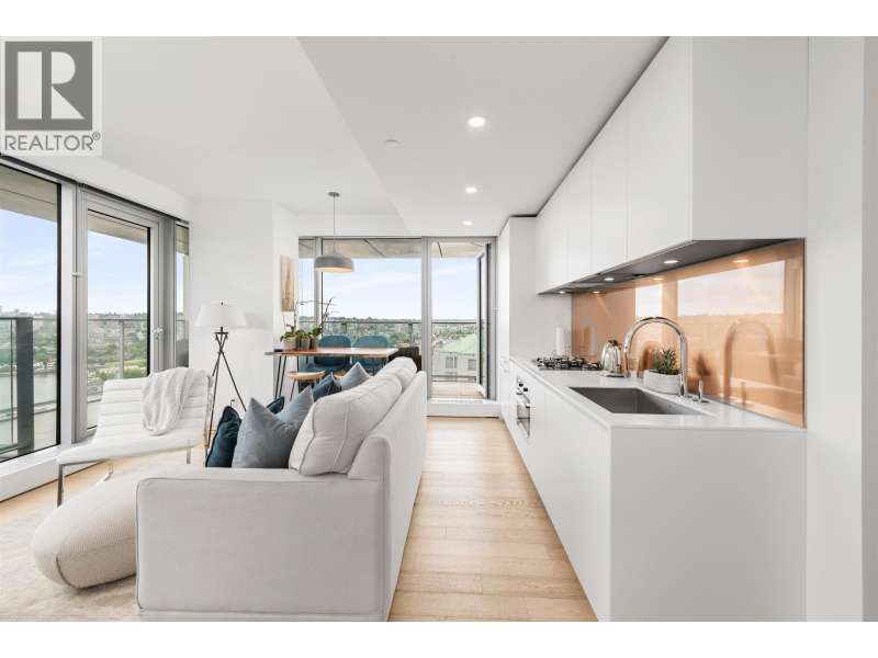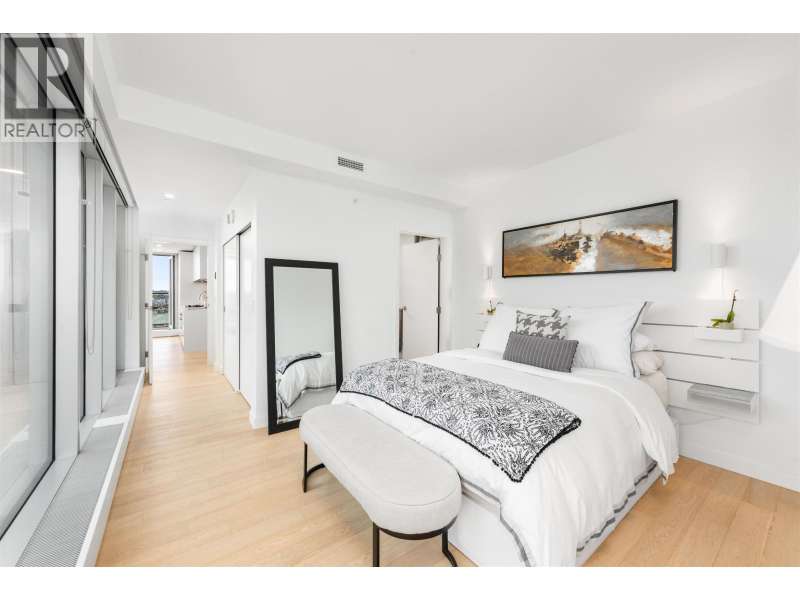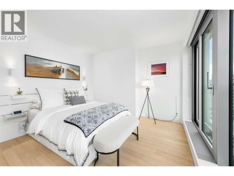 Welcome to Vancouver House by Bjarke Ingels x Westbank. This stunning 2 Bedroom corner home boasts two expansive balconies with sweeping water and mountain views. The generous open-concept living space opens to the outdoor living area, and is ideal for entertaining. Features top of the line Miele appliances, brushed oak European wide hardwood, soft close Inform Italian kitchens, limestone bathroom flooring & wall tiles & heating/cooling. 24-hour concierge, state of the art gym & fitness, & large all year round heated outdoor pool. Just 5-7 min from Yaletown skytrain and 1 min from the seawall walkway. One parking and one storage locker included. (id:58403)