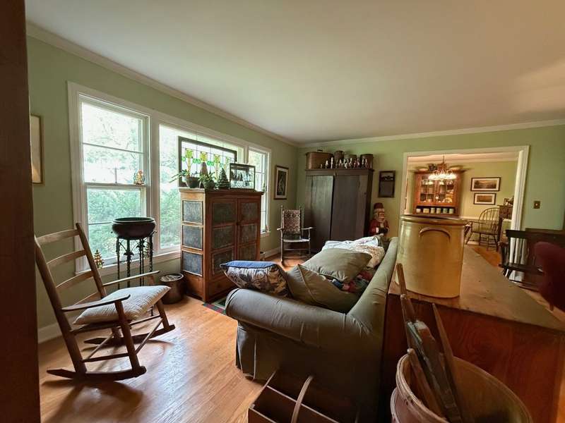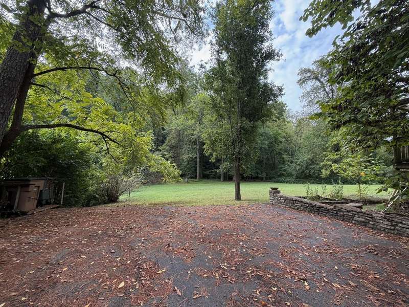 Gorgeous 1.49 flat acre lot that backs to trees and small creek far in the back. No flooding!. Feels very private in the backyard. Tear down and build your dream home or renovate because this home is very livable.