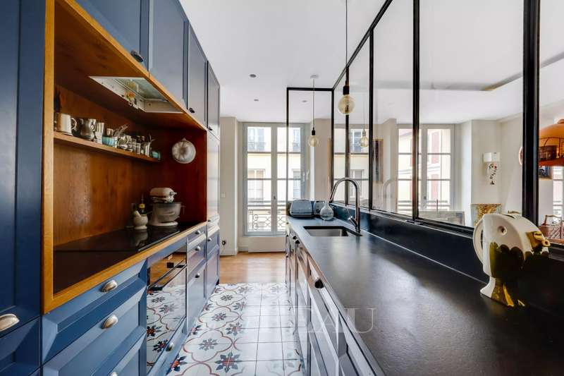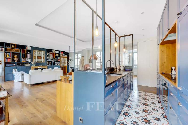 Saint Louis neighbourhood. This recently revamped apartment is on the second and top floor of a late 17th century building located a few minutes walk from the Chateau and the Orangery. An entry with fitted cupboards opens onto a bright 55 sqm dual-aspect living/reception room, a fully equipped kitchen separated by workshop-style glazing, three bedrooms with fitted storage space (one with a shower room/wc), a bathroom and a guest wc. With a cellar. In a convenient location near the lively shopping streets and the schools, and a few minutes walk from the stations. The building is not equipped with a lift.