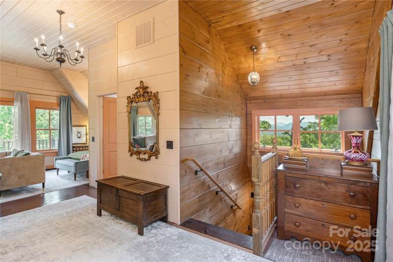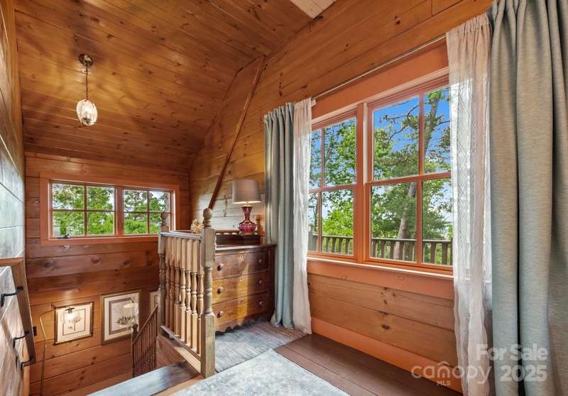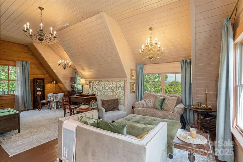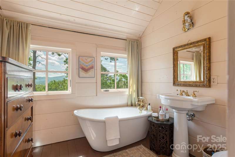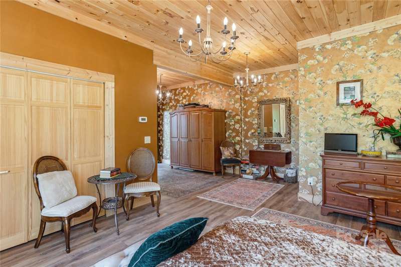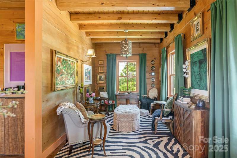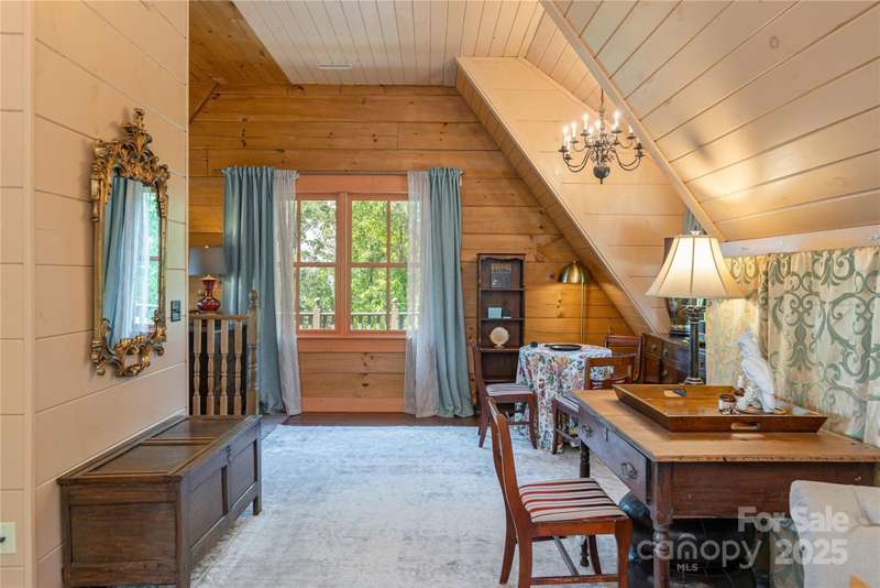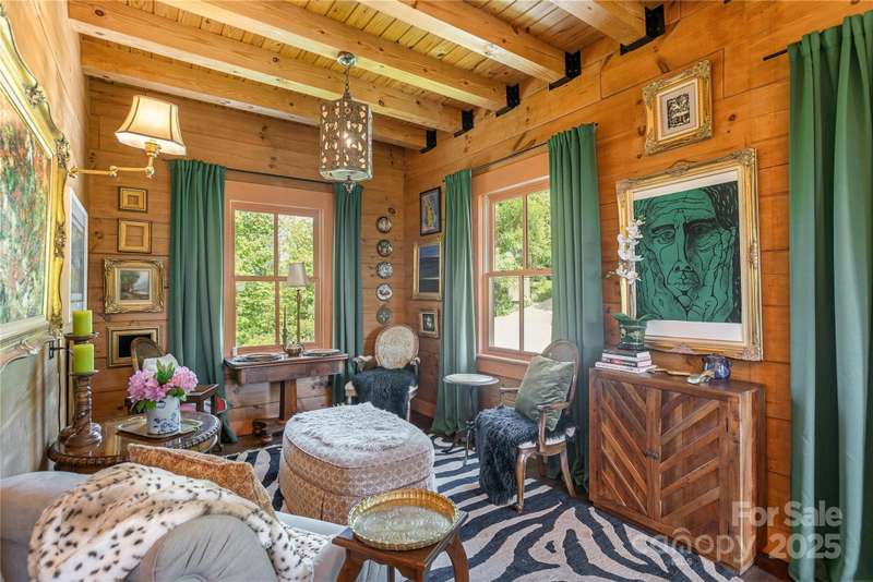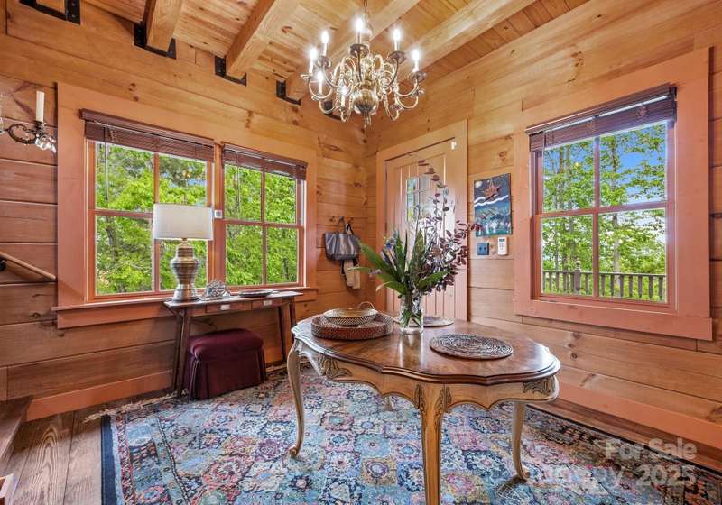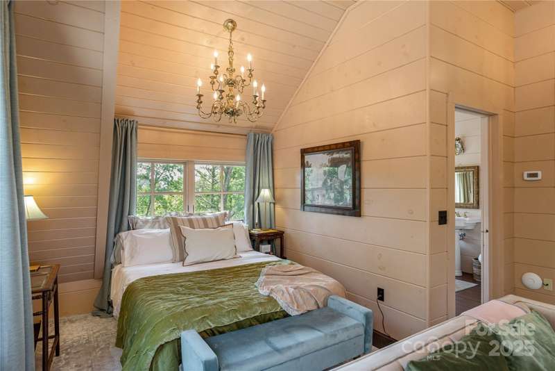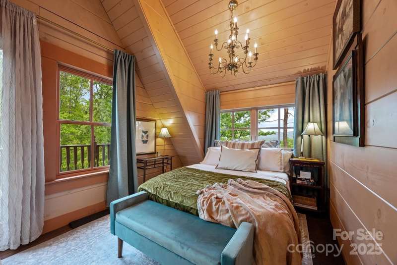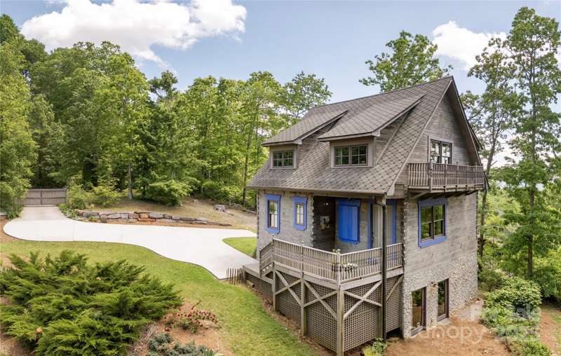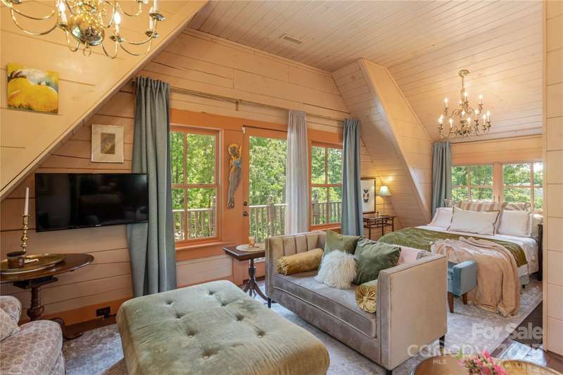 Striking, fairytale cottage sited beautifully on 1.81 acres mere minutes from downtown, Biltmore Village and Mission Hospital. Built as a guest house, this European-inspired, three-story home offers two primary suites, as well as the potential for multiple living combinations to suit your lifestyle with additional electrical & plumbing in place. Privacy in the heart of Asheville, this easy-to-build lot offers plenty of land for a large main house to be attached to the existing structure while still allowing room for a yard and gardens. Hand-built by an expert Canadian craftsman of solid pine logs, this home overflows with warmth & character. Geothermal, 3-zone heating and cooling for high-efficient living. Whole house water filtration system. Enjoy sunrise and sunset year round, along with stunning 180 degree winter views of the city and mountains. Steps away from the Beaucatcher Mountain greenway with trails leading to McCormick Field & downtown. No HOA fees.