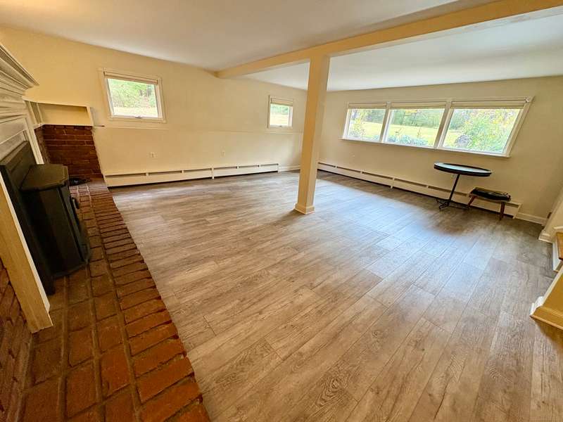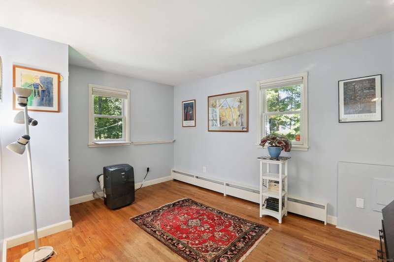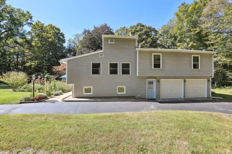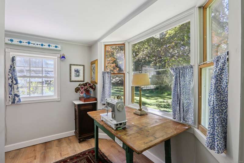 This unique 5+ bedroom home, on 1.5 private acres, offers a huge sunroom/solarium facing the expansive yard. The large eat-in kitchen features a woodstove, stainless appliances, granite counters and plenty of room for an island. There's two rooms off the kitchen, which can as an office, extra bedroom, or craft room. The larger room has an attached full bath, making it a great option as a main-level primary bedroom. Garage access is only a few steps away from the kitchen. The cozy living room has a pellet stove. Bedrooms are on different levels, offering easy multi-generational or home office living arrangements. Off the primary bedroom is a Juliet balcony and another bedroom that could be used as a huge walk-in closet or turned into a primary bathroom. The room on the top floor could make a wonderful studio, remote office or exercise space. Newer improvements include a brand new Peerless boiler, plus updated kitchen, windows, and bathrooms. The south-oriented solarium is 24' long, with