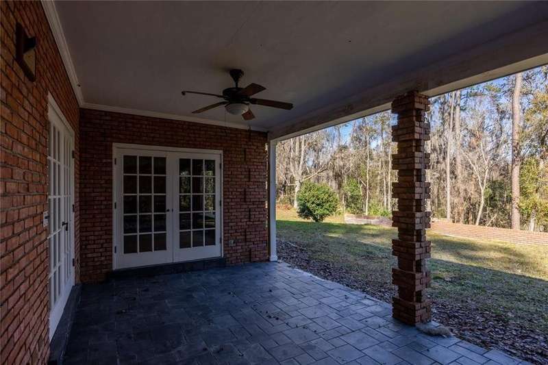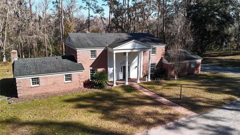 Welcome home to beautiful Lazenby Acres! This 5 acre brick country manor features abundant space to live, work, enjoy serene views, and entertain with the convenience of being centrally located; an amazing entrance with winding staircase welcomes you into the ground floor which is well appointed with a first floor office with fireplace, full bathroom and walk-in closet which could serve as a 5th bedroom / primary suite; formal living room, formal dining room, large family room with fireplace, a game room, huge covered porch with outdoor kitchenette, 2 half baths; indoor laundry room, & large 2 car garage; the second floor features renovated living quarters with 4 bedrooms and 3 full baths; Primary suite includes walk-in closet & dual vanities, and all bedrooms offer picturesque views to nature; Floor plan provides flexibility, ready for fun, and entertaining; large kitchen, ample storage; Remodel into your dream estate, options abound!Excellent location in gated community convenient to shopping, restaurants, schools, parks, UF, Santa Fe, and amenities.
