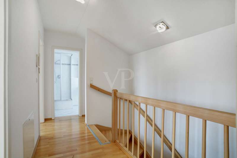 This attractively designed 4.5-room maisonette attic apartment offers a living space of approx. 136.89 m² and is located in a well-kept 9-party apartment building completed in 2004. The apartment has a total of 4.5 rooms and, with its well thought-out room layout, meets the requirements of a modern family or a discerning couple. A passenger elevator provides convenient access to the apartment level and underscores the upscale living comfort of the building. The property is characterized by its spacious and functional design. Upon entering the apartment, you enter an inviting hallway that offers enough space for a checkroom. All rooms are directly accessible from here. The open-plan living and dining area is the central point of the apartment and impresses with its clear structure and access to the barely visible roof terrace. The large windows create a bright and friendly atmosphere and offer a pleasant view that invites you to linger. The kitchen, which is cleverly integrated into the living area, makes it easy to entertain guests and thus becomes the focal point for sociable evenings. Adjacent to the living area is a small balcony in addition to the roof terrace, which offers additional outdoor space and is ideal for spending relaxing hours outdoors. The apartment has three bedrooms, which can be used individually as children's rooms, guest rooms or studies. All of the bedrooms are optimally laid out and their appealing size allows for comfortable furnishing. Additional comfort is provided by the two bathrooms, one of which is equipped with a bathtub and the other with a shower. The bathrooms were modernized in 2024 and now have a contemporary design. Underfloor heating in all rooms ensures even and pleasant heat distribution and underlines the living comfort. The predominantly neutral yet modern furnishings allow you to furnish and design the apartment according to your personal preferences. Another plus point is the central location of the property, which offers good public transport links and shopping facilities despite the quiet surroundings. Schools and nurseries are nearby, making the location particularly attractive for families. In summary, this well-kept top-floor apartment offers an excellent combination of a well thought-out room layout, modern fittings and an attractive location. It proves to be the ideal place to live for all those who value quality and functionality. The total price for the 4.5-room maisonette top-floor apartment is 998,000 euros + 20,000 euros per underground parking space. Contact us to arrange a viewing appointment and take a personal look at the advantages of this property.