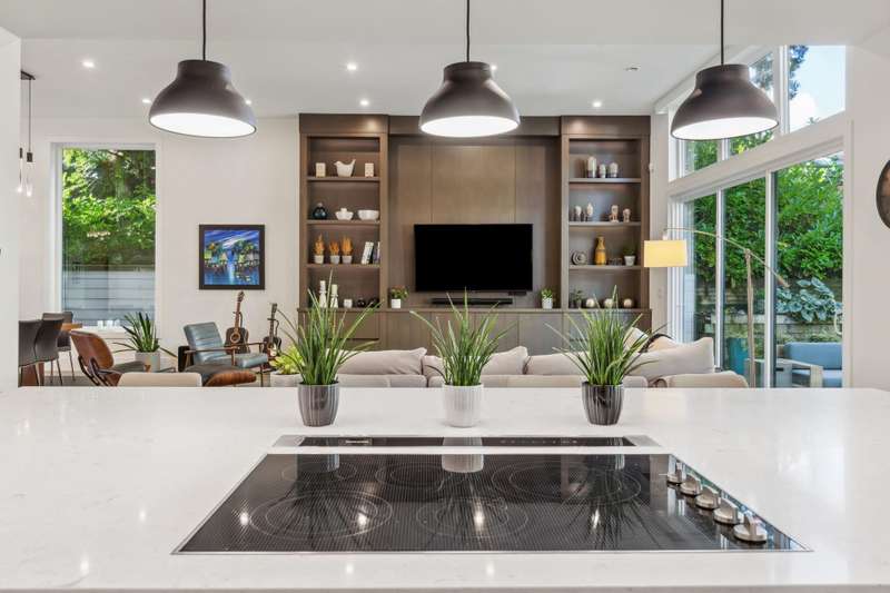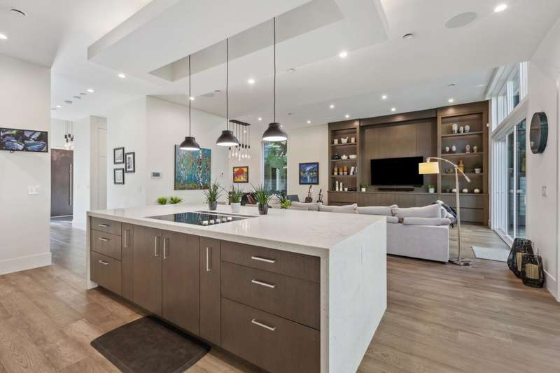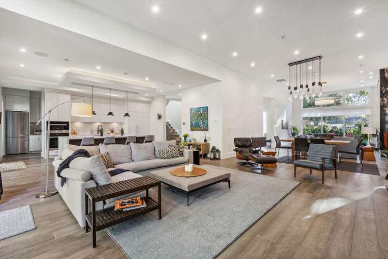 This stunning modern home of over 6000 sf is ideally located close to schools & parks.Thoughtfully designed, this home is an entertainer’s dream with the main level boasting 12’ ceilings.The designer kitchen features large island with breakfast bar, Miele appliances & separate Chefs’ kitchen with pantry.Two sets of patio doors lead to the private backyard with patio, cabana, outdoor kitchen & hot tub.Find the 1st of 7 bedrooms on this level, perfect for guests.Upstairs, 3 spacious bedrooms feature WIC & ensuite baths.The primary has WIC, shower, soaker tub & balcony. Lower-lvl features media room, games, rec room, 5th bedroom & legal 2 bed suite. Upgraded built-in speakers, smart lighting & custom blinds. Enjoy peace of mind with security cameras, and alarm. Open House Sat Sept 20 12-1:30