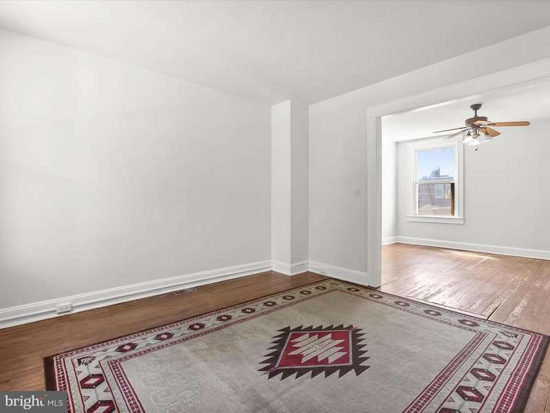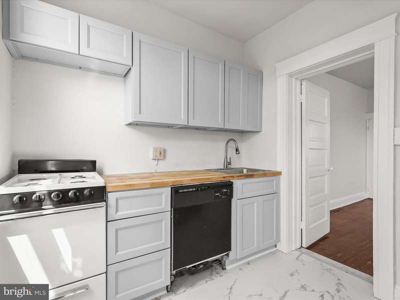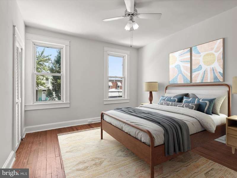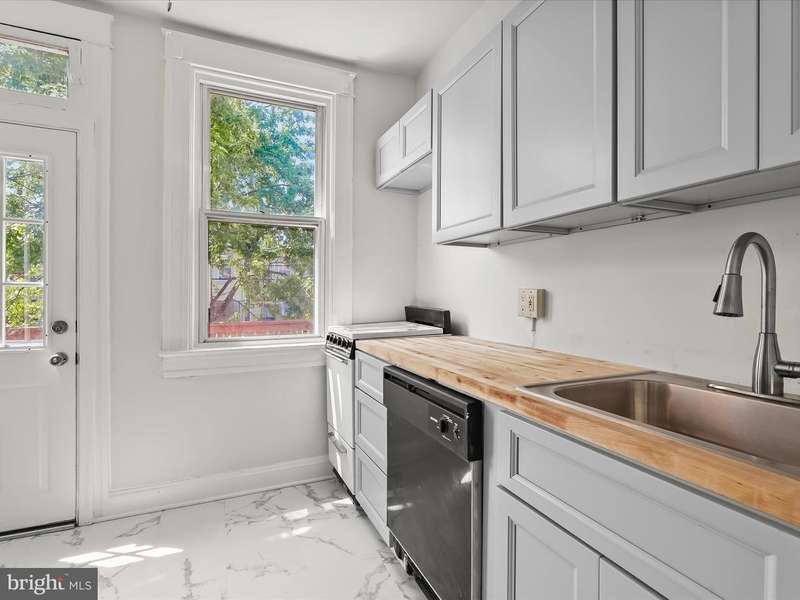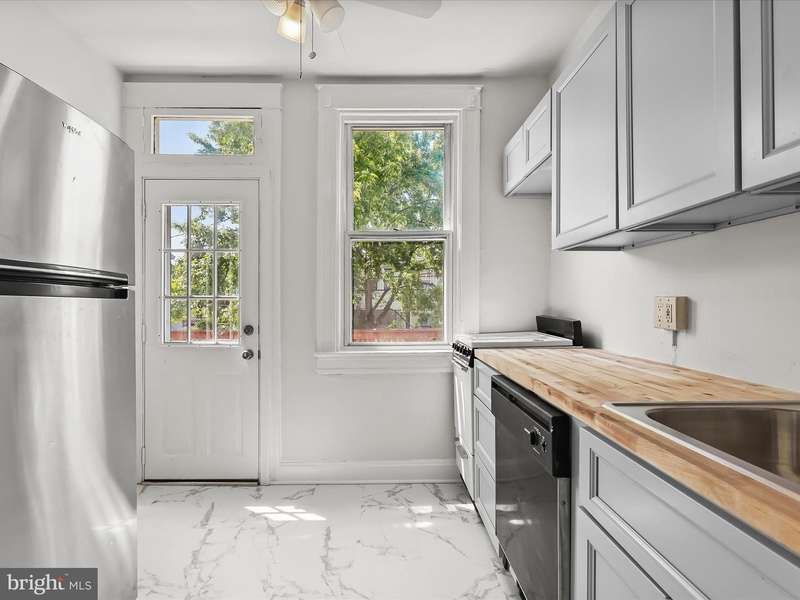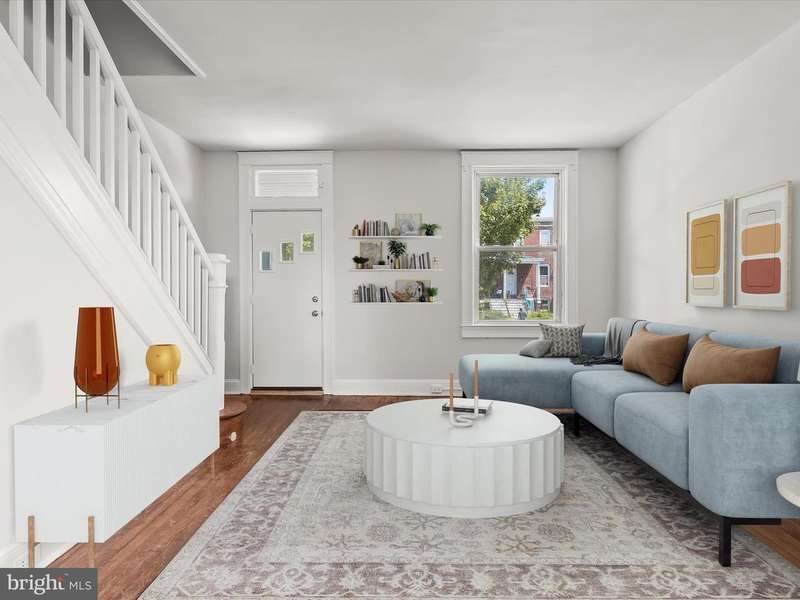 This charming two-bedroom, one-bathroom rowhome offers comfort and convenience tucked away in Waverly. A welcoming front porch sets the tone, leading into a light-filled interior with a neutral color palette and hardwood floors. The main level features a front living room and a dining room with a built-in corner cabinet for added character. The kitchen boasts new cabinetry, butcher block countertops, and access to the back deck that is ideal for outdoor dining or relaxing. Upstairs, the primary bedroom includes a walk-in closet, while a second bedroom and a full bathroom with a tub shower complete the upper level. A fenced rear yard provides private outdoor space, and the unfinished basement offers ample storage and laundry. Just around the corner from The Weinberg Y, Lake Montebello, and a variety of parks and entertainment options. Minutes to MedStar Union Memorial Hospital, Johns Hopkins University, Loyola University, Morgan State University, Baltimore City College, public transportation options and I-83. Some images have been virtually staged.