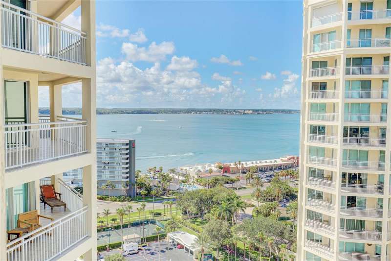 One or more photo(s) has been virtually staged. Perched on the 18th floor of the prestigious Watermark Tower, this rare Alcazar floor plan captures breathtaking panoramas—Gulf sunsets, sparkling winter sun, and the serene expanse of Clearwater Harbor. From the moment you enter, floor-to-ceiling vistas invite the sea and sky into every room. Both bedrooms, along with the open-concept living, dining, and kitchen spaces, showcase dramatic Gulf views. Each generously sized bedroom features direct terrace access, allowing you to step outside and savor the coastal breeze morning or night. Large closets, well-appointed baths, and abundant storage create a home that blends elegance with livability. A soft, neutral palette provides the perfect backdrop for the ever-changing colors of the horizon. Life at The Grande is the epitome of resort-style living: multiple tennis courts, state-of-the-art fitness centers, inviting social lounges, billiards, two Gulf-front pools, heated spas, and barbecue pavilions—all within a beautifully landscaped, 24-hour guard-gated compound. Phenomenal concierge service ensures every need is met with ease. This is more than a residence—it’s a front-row seat to Sand Key’s most spectacular views and lifestyle. Schedule your private showing and experience The Grande for yourself.