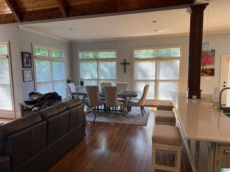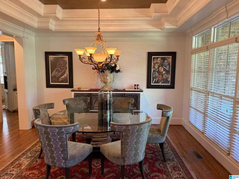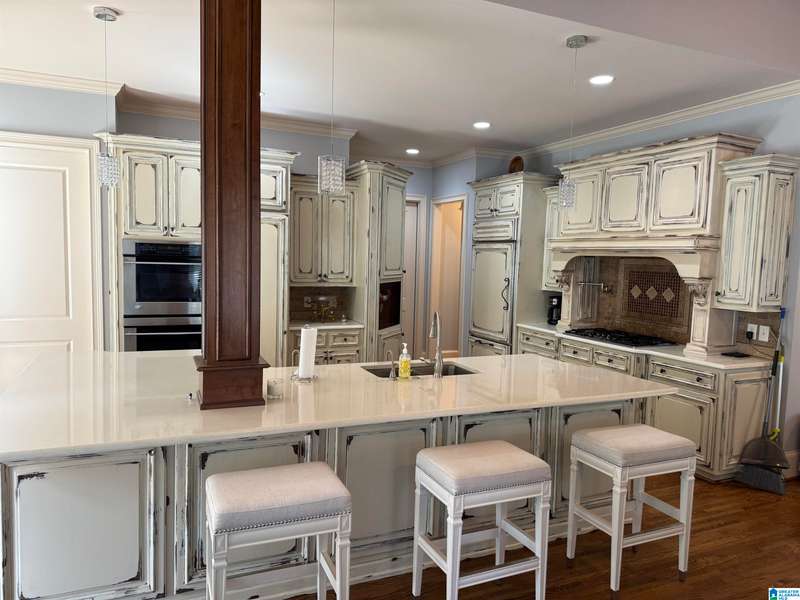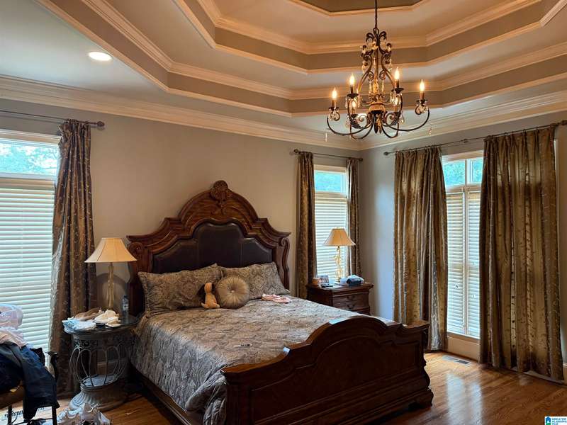 This custom home welcomes you with double front doors, an elegant foyer, trey ceiling, and classic wooden staircase. The dining room opens to the front den, creating a comfortable and inviting gathering space. The open floor plan combines the kitchen, family room, and casual dining area. The family room features soaring wood-beamed ceilings and a beautiful fireplace. The kitchen includes a large island with seating for six+, quartz countertops, double ovens, gas cooktop with pot filler, built-in refrigerator, hidden walk-in pantry, and all custom cabinetry with abundant storage. The main-level master suite offers dual vanities, his-and-hers closets, and a spacious bath. Upstairs you’ll find four bedrooms, three with private baths, plus a bonus area ideal for an office or playroom. The daylight basement provides a complete in-law suite. Enjoy a beautiful pool with a fenced backyard, offering the perfect setting for relaxation, entertaining, and family fun. Court approved sale.