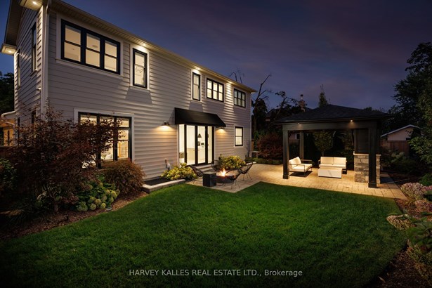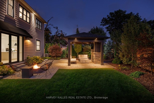 Welcome to 588 Stephens Crescent, a beautifully designed two-storey modern farmhouse built in 2020 with Hardie Board Exterior. Nestled on a sun-drenched, oversized corner lot, this home offers an incredible outdoor living space featuring a gazebo with a natural stone wall, a gas fireplace, and a wall-mounted TV perfect for entertaining year-round.Inside, the thoughtfully designed layout boasts four spacious bedrooms, each with its own ensuite, ensuring comfort and privacy for the entire family. The main floor features a mudroom and laundry room, a stylish powder room, and an open-concept kitchen, dining, and family room. The gourmet kitchen includes an oversized island that comfortably seats 6 people, ideal for gatherings. Enjoy seamless indoor-outdoor living with a walkout to the expansive yard from the main living area.Additional main floor highlights include a cozy living room with brand-new built-in bookcases and a built-in desk, creating a functional yet elegant space.The lower level has been recently upgraded with new flooring and features a gym area, a spacious rec room, a family room, and a full bathroom all in an open-concept design.Completing this exceptional home is a heated garage for year-round comfort.With its impeccable layout, high-end finishes, and unbeatable outdoor space, this home is perfect for families who love to entertain. Upgrades to home include; Irrigation System (2023), California Closet Organizer Through out (2023), Built-In Bookcases in Family Room (2023), New VInyl Flooring Through out Lower Level (2025), 5 Zone Sonos Independent Sound System(2023), New HIK Vision 2MP Surveillance System (2021) (id:6370)