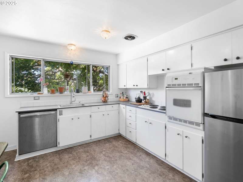 Welcome to Vincent Court Condominiums; A mid-century modern complex nestled in the coveted Concordia neighborhood backing to Fernhill Park. The spacious layout of Unit 7 features two bedrooms, two full bathrooms, a large living room, and eat-in kitchen. Original character includes tile, hardwood floors, and a wood burning fireplace. Recent updates include interior paint, new kitchen floors, and light fixtures. Large south facing windows offer ample light for house plants or indoor herb gardens. This unit comes with one deeded parking spot and storage unit. With just 10 units in the complex, the HOA covers the laundry, heat, hot water, water, sewer, garbage, and exterior maintenance- making this unit easy to care for. Nearby, is the vibrant Cully and Alberta Arts neighborhoods, offering shops, restaurants, and local grocery stores. Don't miss the view of Mt. St. Helens on a clear day from the back bedroom!