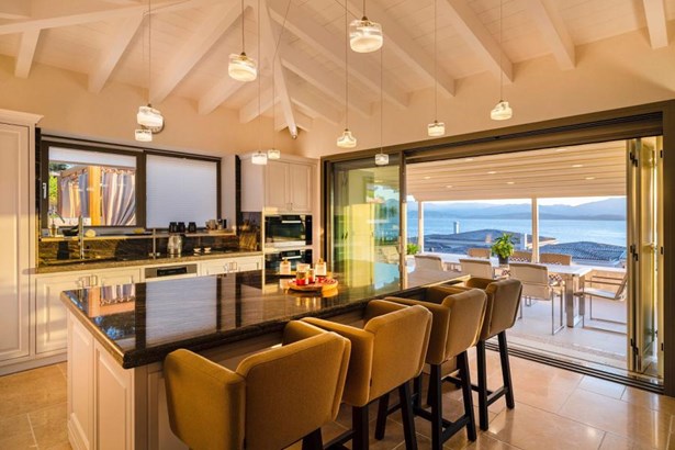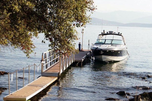 Outside, there is a spacious dining area, a 28m pool, BBQ area, fully equipped kitchen, and a yoga area surrounded by imported plants. The property is beautifully illuminated with fiber optic lighting, creating a magical ambiance at night. It includes a private 19m jetty with mooring facilities and security cameras.
