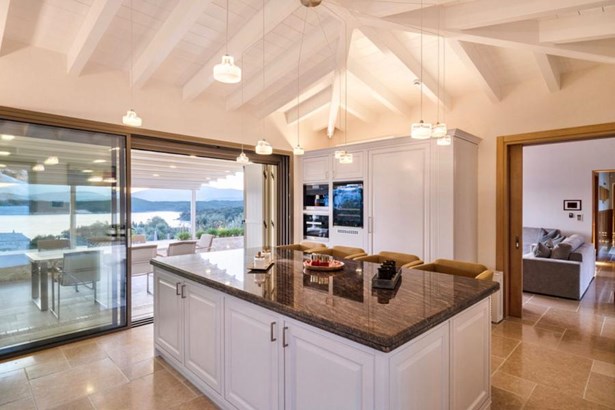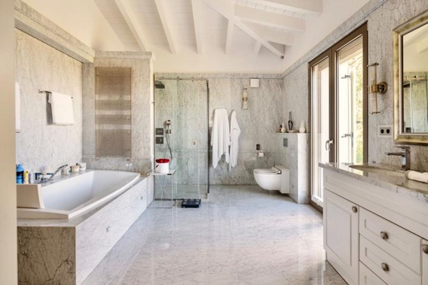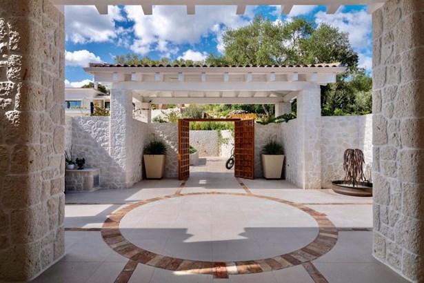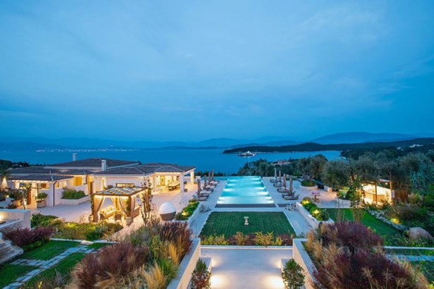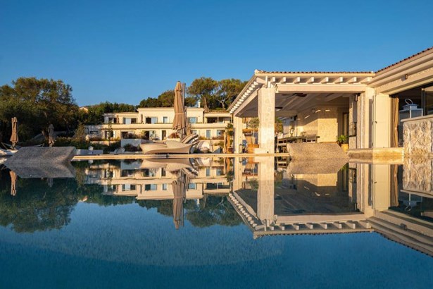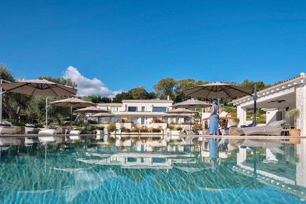 This is a luxurious property located in a picturesque setting with breathtaking views of the Mediterranean. It consists of two connected properties, featuring a total of 11 spacious ensuite bedroom suites, including a two-bedroom "gatehouse." The interiors are elegantly designed, with fully fitted kitchens equipped with top-of-the-line appliances and a dedicated professional chef's kitchen for entertaining on a grand scale.