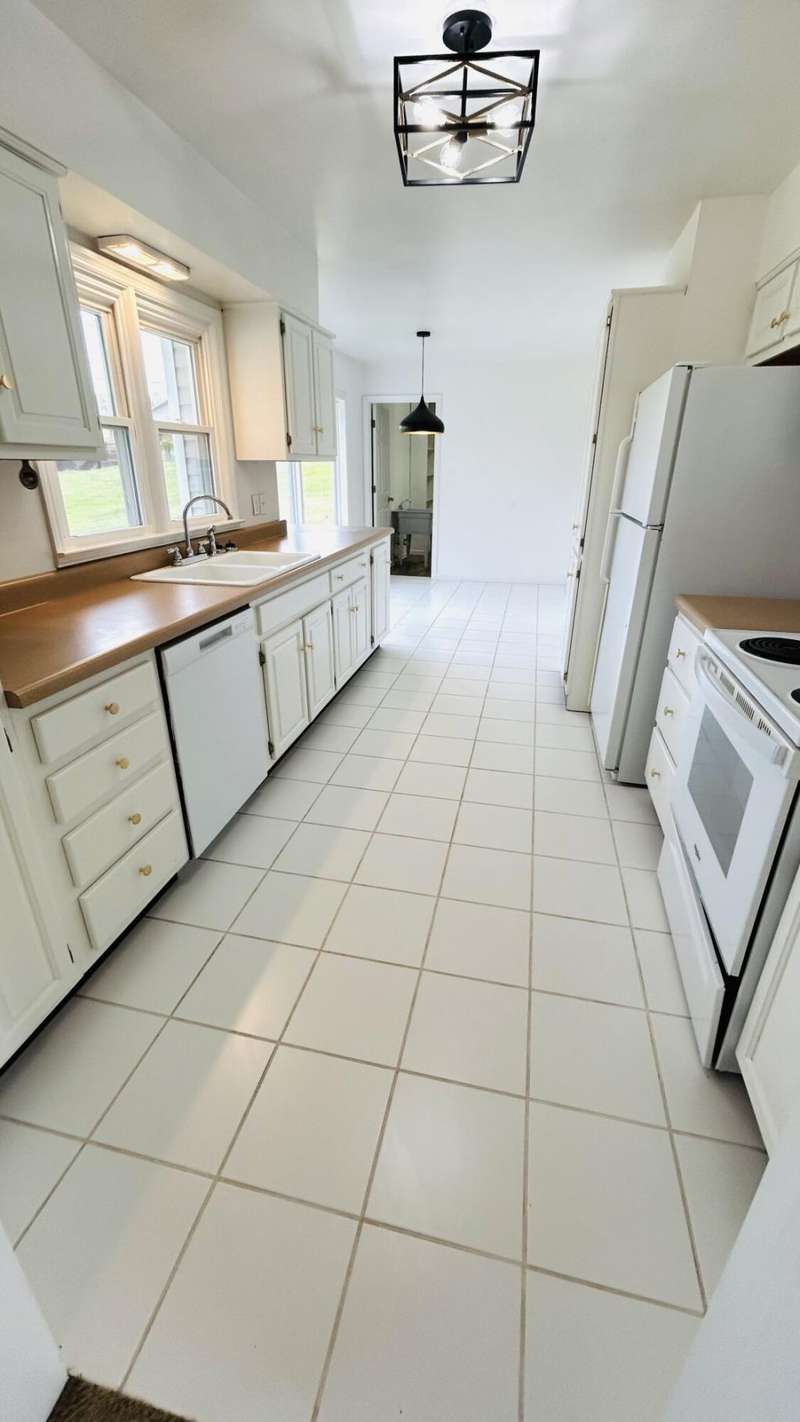 Located at the edge of London city limits you'll find this spacious ranch home with a flair of contemporary style with it's vaulted living/dining space. Situated on a well-landscaped corner lot with a full, partially-finished basement with drive up access as well as 2-car attached garage on the main level. Loads of possibilities for this total 3486 square feet of living space. The main level of 1840 sf offers an inviting vaulted living room with 2-story window wall for ample natural lighting. The living and dining area are separated by a 2-story masonry fireplace and just off the dining room a 10X17 deck. The white galley kitchen is equipped with electric range, refrigerator & dishwasher & breakfast area with bay window. Just off the breakfast area is a roomy separate utility room w sink & shelving. The primary bedroom & ensuite are located away from the 2 guest bedrooms & guest bath for privacy. The lower level which had been used by previous owner as a business office is totally open concept w 19X27 & 31X33 spaces, partially finished with a full bath with shower, and can be finished out as additional bedroom/office/recreational/work space....your call! This property is reasonably priced and owners ready to sell!