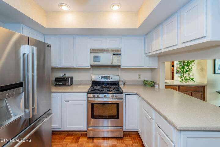 A stunning 4 bedroom spacious updated condo invites you to tour and imagine living in The Westlands. Enjoy the tiled Pergola landscaped entrance with gated patio & enclosed sunroom with skylights featuring greenscaped views & lower level walled courtyard patio vista. The central focus is the cathedral great room with marble trimmed fireplace with gas logs, framed with a painted traditional mantel with dentil molding.Also, featured is the stunning sunroom with tile floors & skylights. The formal dining room with crown molding opens to the Kitchen with white cabinets, solid surface corian tops & stainless appliances opening to a cozy den with views of the private landscaped patio. Main level Primary Bedroom suite features an enclosed patio, walk-in shower with glass doors, whirlpool tub neutral tile floors.. The dressing area features a sink & vanity with corian top & mirrored double closet storage. There is a classy Powder room with antique sink chest & a separate laundry room with washer & dryer. Gleaming hardwood parquet floors are featured in main living areas. The Office on main level could serve as BR #2. The lower level features a family room with sliding glass doors to a landscaped patio & a largebar with sink perfect for a full kitchen. Bedrooms # 3 & #4 each with a private bath & walkin closets. There is a carpeting finished space & extra storage closets for exercise, storage & wrapping rooms. The lower level is fully carpeted. Beautiful finishes, architectural trims, beautiful views & impressive features in every room. On the main level, a 2 car garage with storage features a level entry into the condo. ....Only in The Westlands, Enjoy a casual lifestyle with newly renovated clubhouse, salt water pool, new green space & gated security with impressive landscaped grounds. Fees $550/month, $2400 annual, One time Buyer transfer fee 1/2% of purchase price at closing.