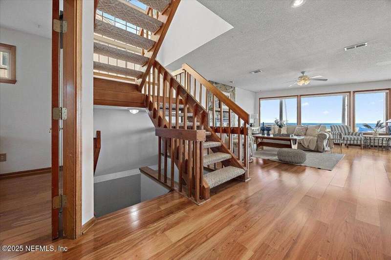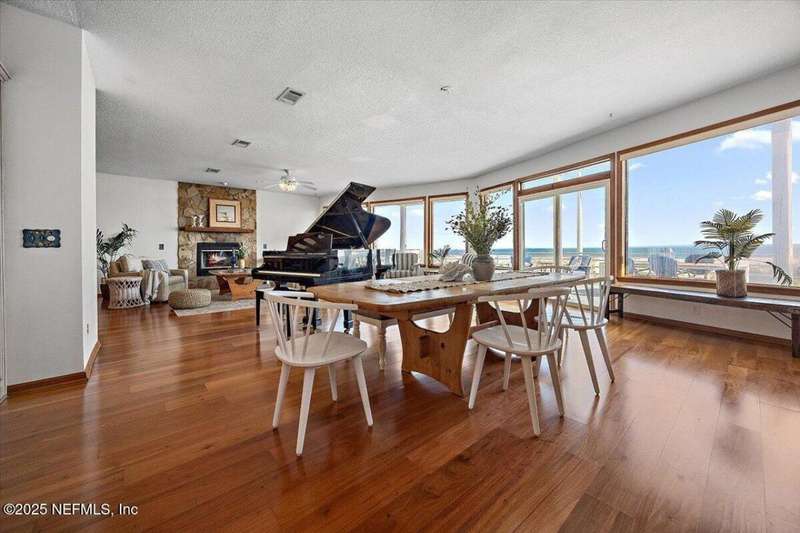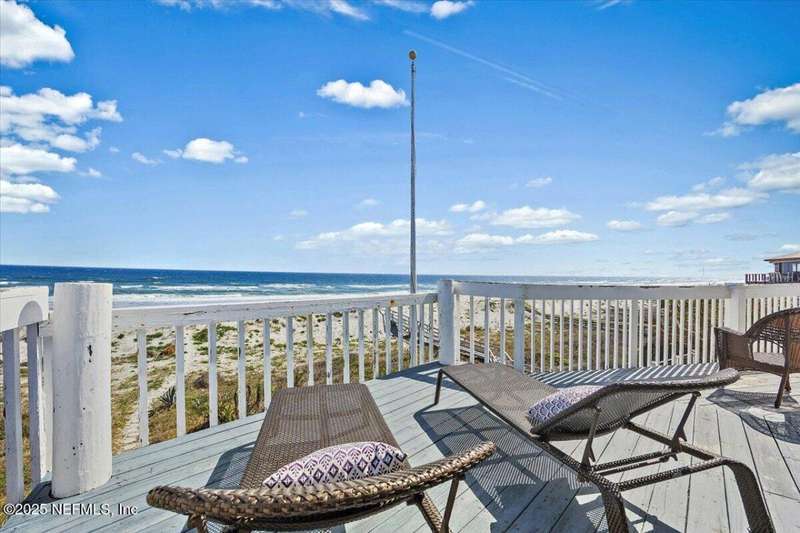 Incredible new price! Imagine a beautiful oceanfront property with stunning views of the Atlantic Ocean and incredible sunrises. The main house is just steps from the shore and was designed with an open concept floor plan with high ceilings, tons of windows facing the ocean and large oceanfront balconies on the 2nd and 3rd floors. The spacious home features over 3500 sq. ft. of beachfront living, with the main living on the open and expansive 2nd floor with wood floors, fireplace in great room and dining area. Huge chefs' kitchen with breakfast/snack bar, cooking island and tons of cabinets. 2nd floor deck/windows expand width of house. French doors open to office/den. Upstairs features 4 generous sized bedrooms. The primary and 2nd have access to the oceanfront balcony. Primary also has a fireplace and lux bath with Oceanview soaking tub, separate shower, large cedar walk in closet. Downstairs features 2 other bedrooms, laundry, storage room and access to covered ..see more patio and direct walk to ocean.Tucked away behind the main house is a 3 car garage with ample parking and an upper 2 bedroom/1 bath apartment with approx 800 sq. ft.. The property's location ensures privacy while still being close to Atlantic Beach Town Center, with great shops and restaurants, parks, A rated schools and Atlantic Beach Country Club.