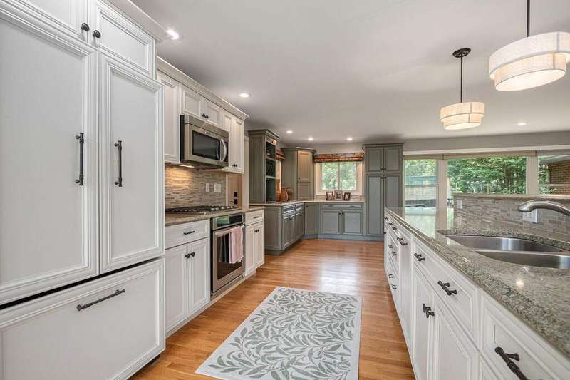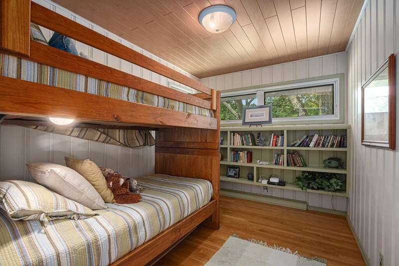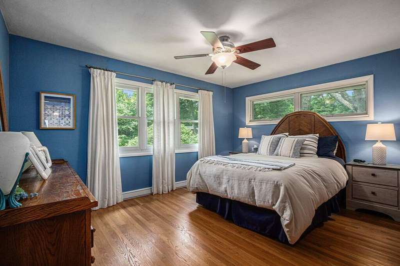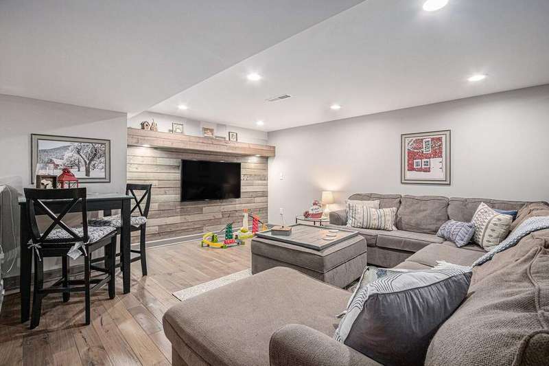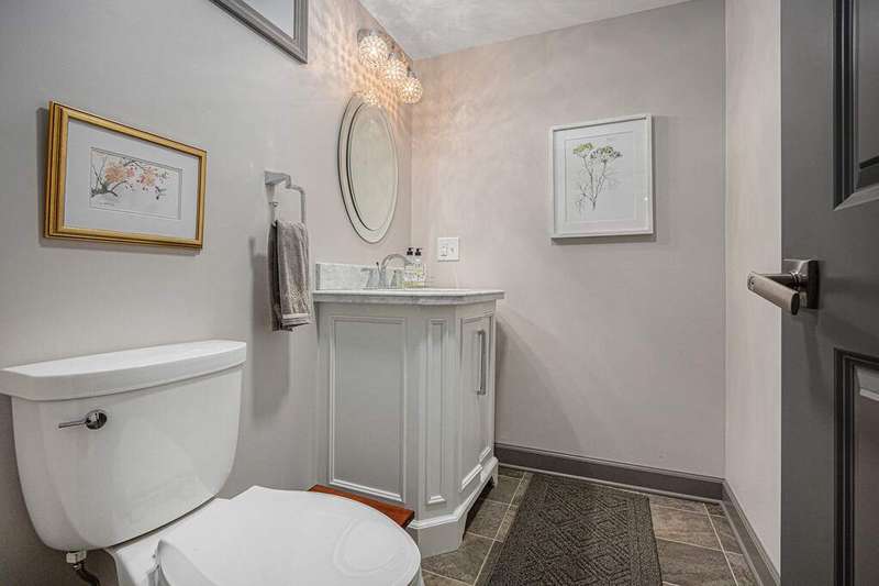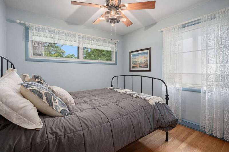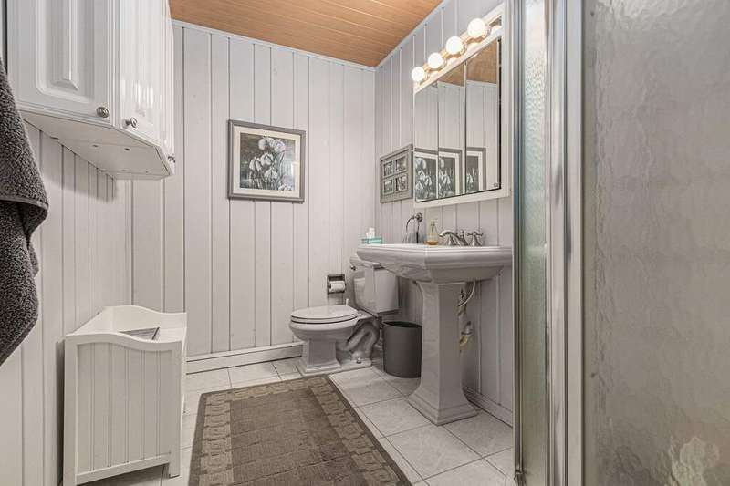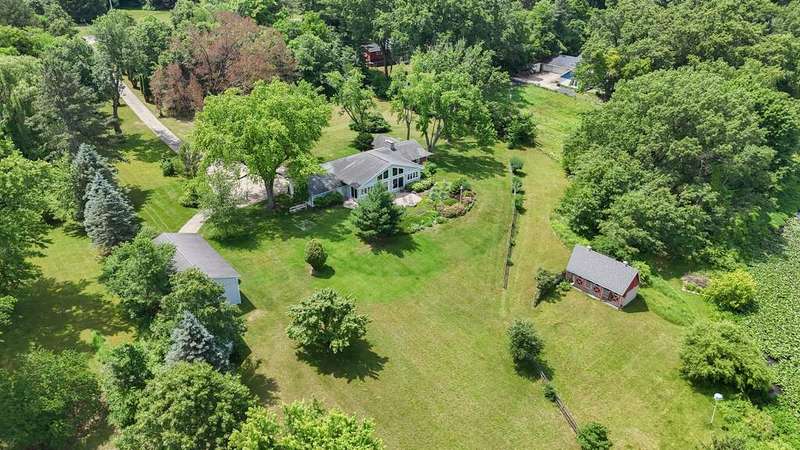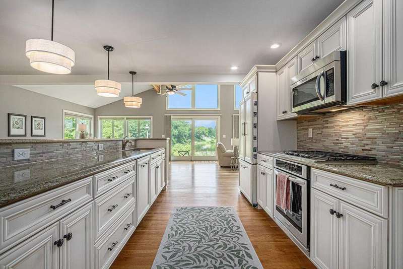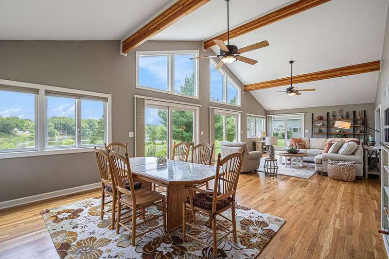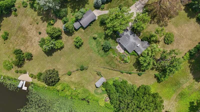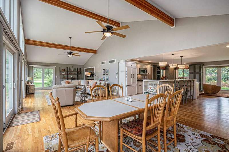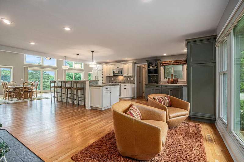 Nestled on the tranquil shores of Mill Pond, this beautifully updated 4-bedroom, 2.5-bath ranch offers peaceful views and thoughtfully designed spaces inside and out. The main level features 3 bedrooms and 2 full baths, while the finished basement (2016) adds a cozy family room, 1 additional bedroom, half bath, and laundry area. An expansive 2013 addition showcases stunning hardwood floors throughout and vaulted ceilings in the living room, framing breathtaking views of the yard and water. The kitchen is a true standout with custom Hannapel cabinetry, sleek Cambria countertops, and a gas-burning fireplace-ideal for entertaining. The entryway just off the attached garage is the perfect drop zone for busy households. Enjoy modern comforts including replacement windows throughout, fiber internet (Frontier), a newer septic system, water heater, water softener (2013), and a well installed around 2001. Outside, the owners have created a peaceful, private beach area perfect for relaxing or playing by the water. A 1200+ sqft barn provides ample storage or workspace, plus an additional shed with a newer roof (2013). Whether you're looking for a year-round residence or a peaceful getaway, this Mill Pond retreat is ready to welcome you home!