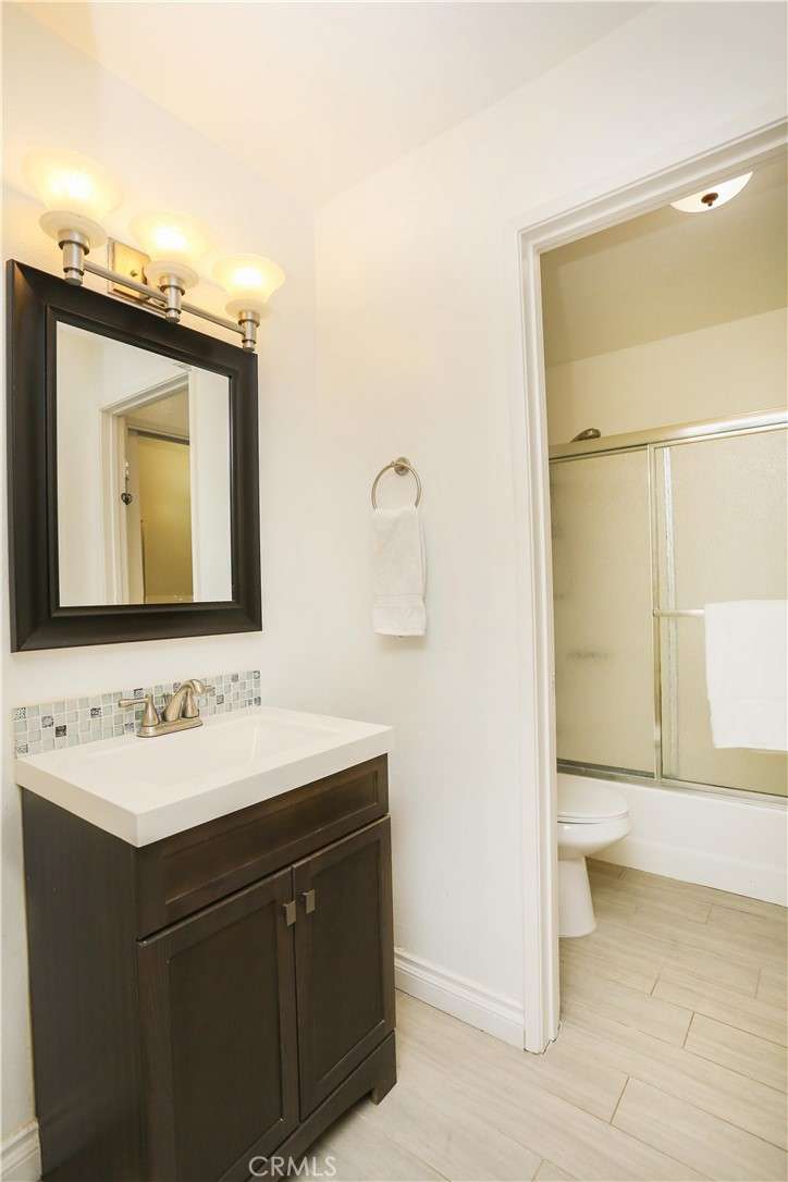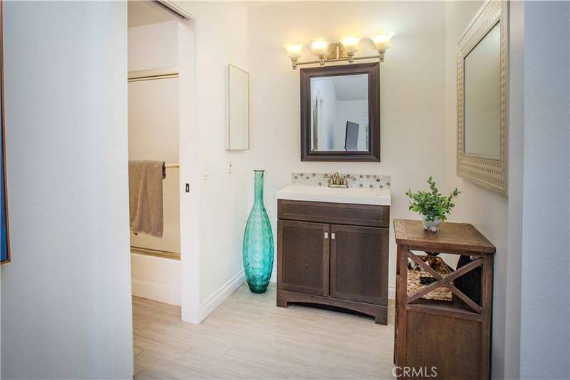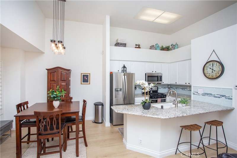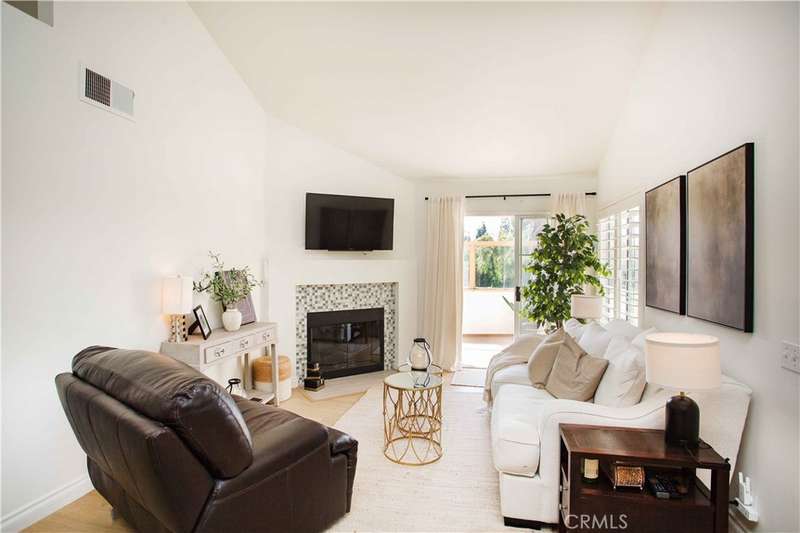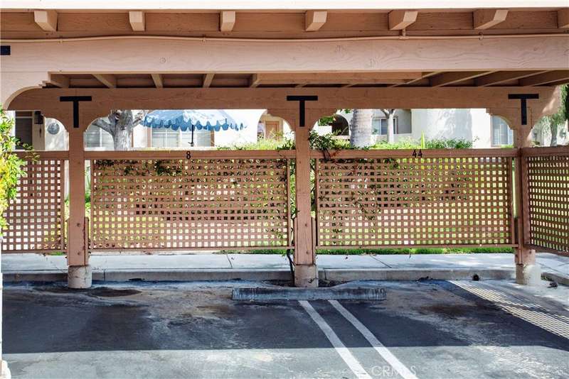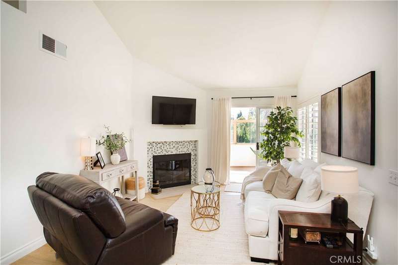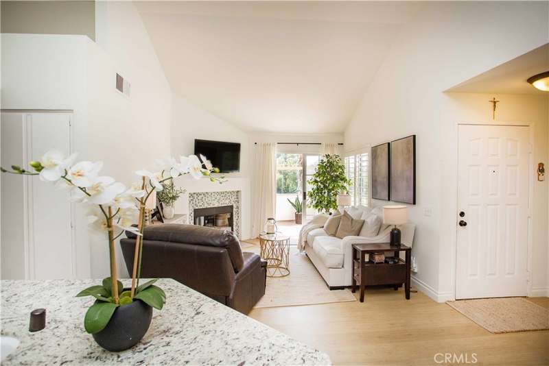Incredible location just 8 miles from the ocean! A wonderful opportunity to own this remodeled upstairs 2 bedroom condo with expansive views! Beautiful new laminate wood flooring throughout, plantation shutters and a fireplace the main living areas. Spacious kitchen features vaulted ceilings and granite countertops with breakfast bar. Spacious dining area with designer lighting. Primary bedroom features a walk in closet and separate make up vanity. Indoor washer/dryer included. There is a designated covered carport just across from the unit and a community pool, spa and playground along with a large park with plenty of grass and walking trails.