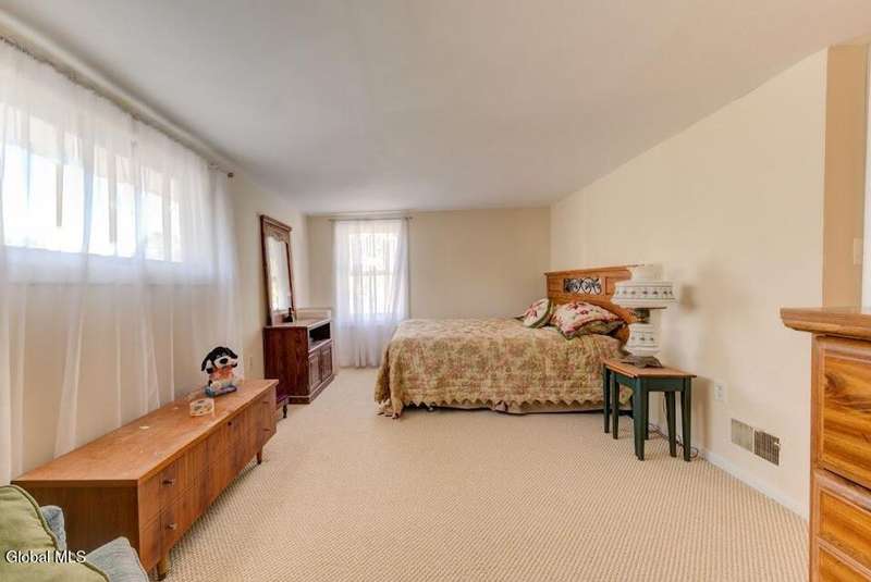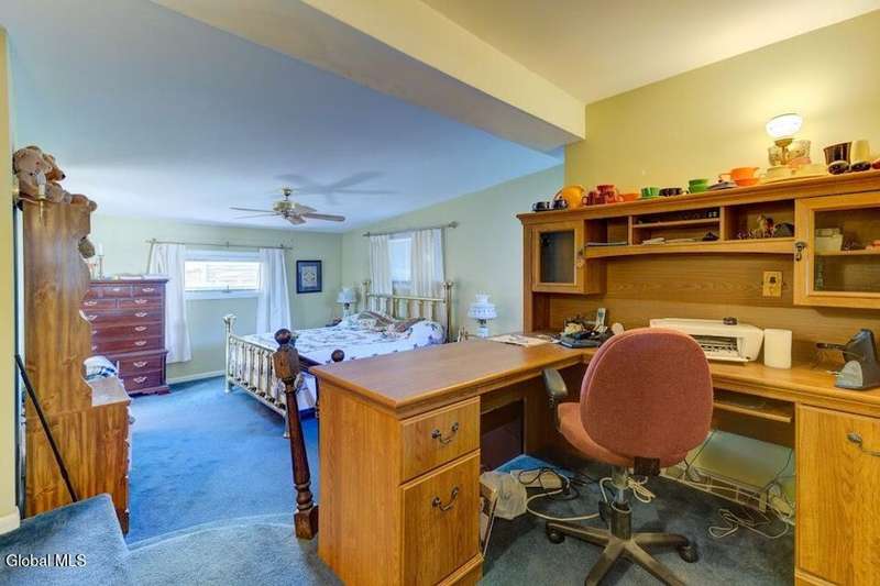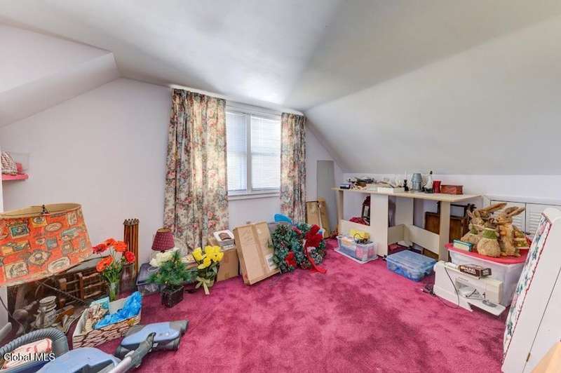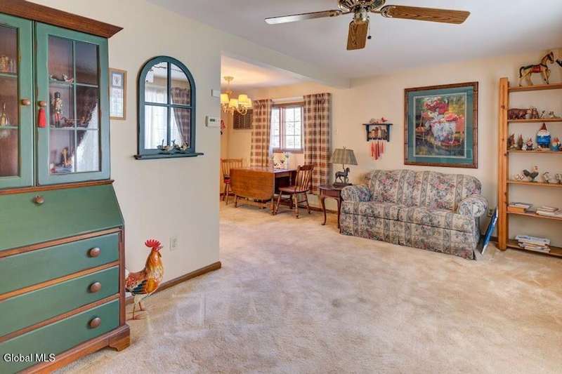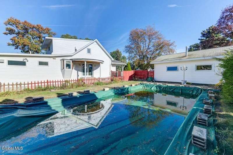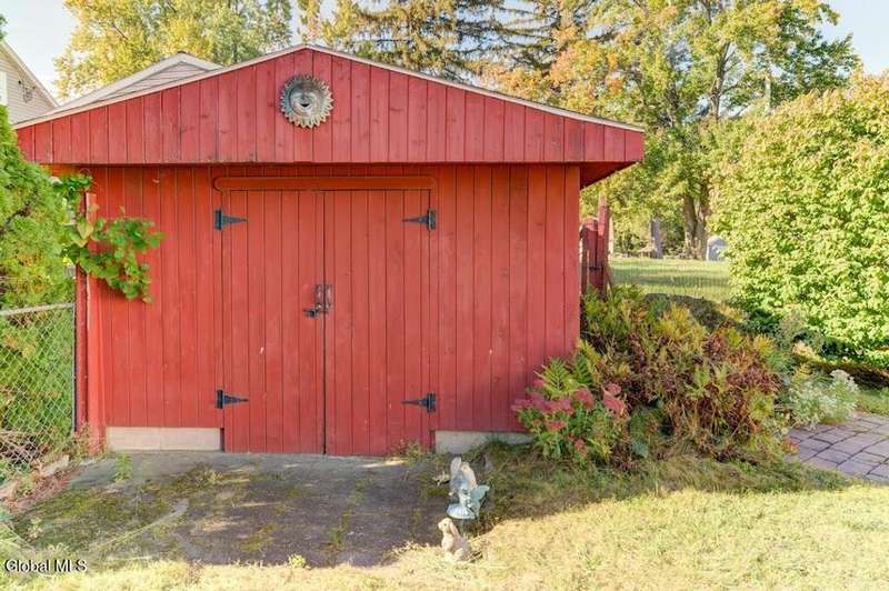 Welcome home to desirable Howell Street! Step inside to a warm and inviting living room featuring hardwood floors beneath the carpet, seamlessly flowing into a dining area?perfect for entertaining. The sun-filled kitchen offers ample cabinet space, plenty of room for cooking and casual dining, making it the heart of the home. The spacious first-floor primary suite is a true retreat, featuring two closets and a full ensuite bath for added comfort and convenience. Upstairs, you'll find two bedrooms and a second full bathroom. Enjoy outdoor living with a fully fenced yard, a separate play area for pets, and a charming, covered patio overlooking your very own inground pool. A handy outdoor shed provides extra storage for all your gardening or pool essentials. Calling all hobbyists: the oversized two-car garage is a craftsman's dream, complete with a built-in tool bench, heating, a sink, and even a ceiling-mounted steel beam for a hoist lift. Located just minutes from local restaurants, roller-skating, schools, and major highways?this home offers both comfort and convenience. Don't miss your chance to make this property your own!