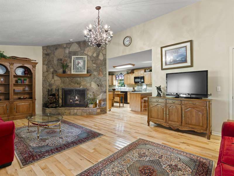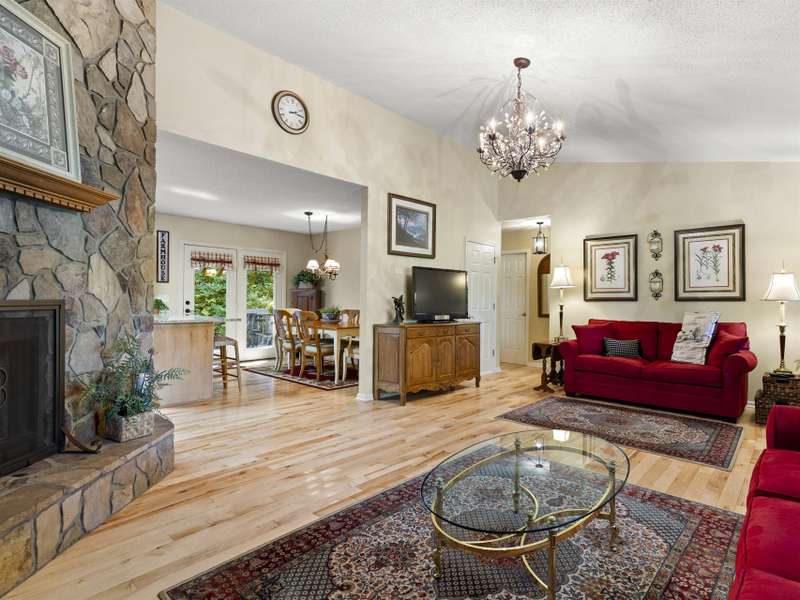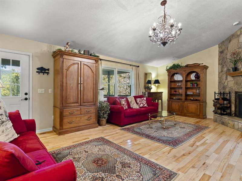 Nestled in a peaceful neighborhood, this welcoming home offers the perfect blend of seclusion and accessibility-just minutes from vibrant downtown Sylva and Dillsboro, and only 15 minutes to Franklin. Step inside to discover a warm and inviting open floor plan that seamlessly connects the kitchen, dining, and living areas, creating a cozy yet functional space for everyday living. The spacious primary bedroom features an ensuite bath, while two additional bedrooms share a guest bath. Beautiful maple wood floors add natural warmth throughout, and the stunning stone fireplace takes center stage, offering the perfect serene greenery and mountain charm. Relax on the covered front porch while soaking in the views, or unwind in the gazebo with an afternoon beverage. A full unfinished basement provides parking and abundant storage, while the outdoor shed with electricity is ideal for hobbies or a workshop.