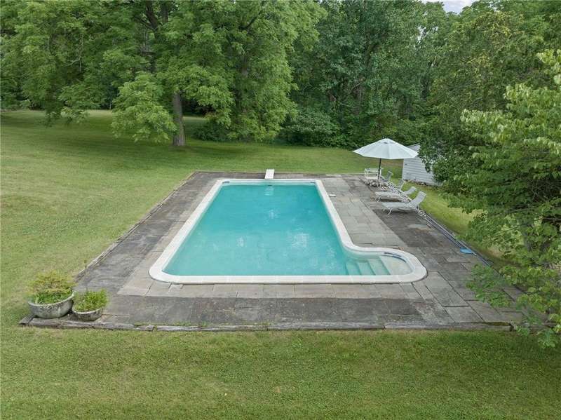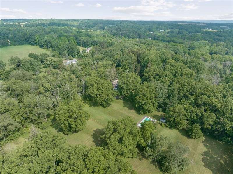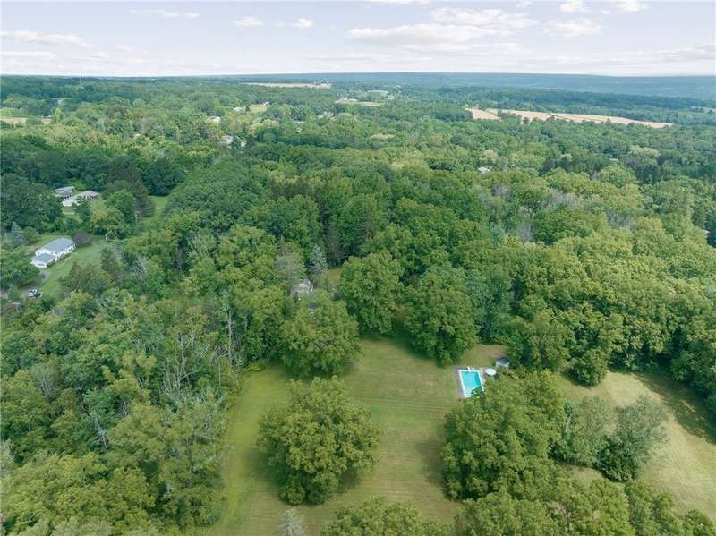 Built in 1809 on 30 exquisite acres, with 65 more available, core features of this classic Federal-style brick house have been meticulously maintained alongside modern day amenities. The property carries a genuine pedigree that pre-dates the incorporation of Tompkins County by nearly a decade and the founding of Cornell University by 56 years. It is now on the market for the first time since 1969. During the past two centuries, as Ithaca has grown up around it, the estate remains a private paradise. At Honna Lee, named six decades ago, fireflies dance magically during summer nights, wild turkeys roam the grounds and hawks and owls still claim the sky. The house is set back from the road by a long driveway and surrounded by majestic oak, walnut, arborvitae and yew, befitting a botanical garden, on a rolling 5-acre lawn, complete with a heated in-ground pool and a wildlife pond, to bask in your private solitude or to entertain. The estate extends over 2300 feet along two roads within the Town of Ithaca and is comprised of mixed old-growth hardwoods and spruce surrounding the home's grounds. Inside you will find hardwood, exposed beams and brick walls. Step back in time in the stone-floored den, or survey your grounds from the four-season, south-facing sunroom. The spacious primary bedroom with vaulted ceilings adds the perfect contemporary touch. While Honna Lee is secluded, it is within 5 miles to top-tier amenities: groceries, bakeries, restaurants, libraries, museums, cinemas, and nightlife. Upper Treman State Park, with its awe-inspiring waterfall and invigorating hiking trails, is just 4 minutes away. The estate is also near Watkins Glen and both the Cayuga and Seneca Lake Wine Trails, home to award-winning wineries, breweries, and distilleries. Honna Lee offers four-season beauty, a rich heritage, and an unmatched combination of privacy and proximity in the heart of the Finger Lakes.