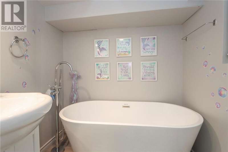 Looking for an affordable home that is updated and charming? Welcome to 348 Burton Ave. Great starter home, investment property or retirement spot. Don't let the outside fool you. Entering the home you have a fantastic foyer area for ease of entry. The inside offers all new white modern functional kitchen with great island, gas stove, dishwasher and loads of work space. This is open to the cute dining room as well as the living room area. Newer laminate through as well as some original hardwood. Enjoy your oversized primary bedroom that can accommodate a king sized bed. Main bath has been renovated with new all tiled shower and new cabinetry. Upstairs is a quaint bedroom area for the kids. Downstairs there are 3 areas. Laundry and utility room and storage. The third bedroom with close proximity to the second renovated bathroom with an incredible modern soaker tub.The last space is currently used as a large office space, but could be used as your rec room hangout. If you are looking for a newer garage, well we have that as well. At the back of the property off the laneway is your newer single detached garage with power. Backyard is completely fenced for privacy and decked for warm summer days and BBQ's. Other upgraded features include Shingles on house and garage done in 2020 comes with 50yr warranty(on house only), furnace and A/C unit 2020. Pls note all measurements are approximate and to be verified by purchaser. (id:7434)