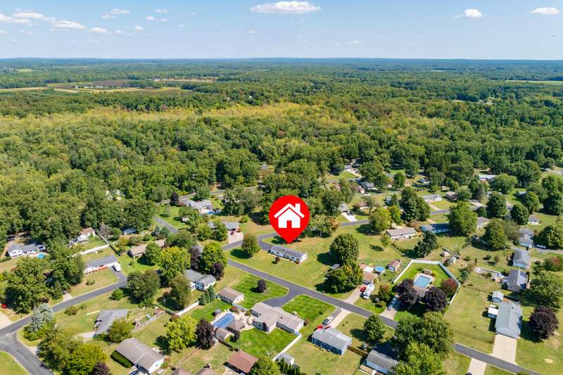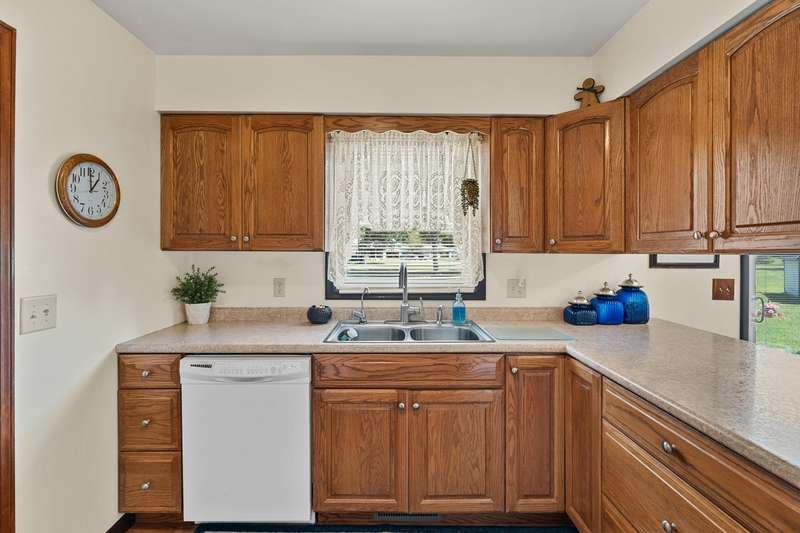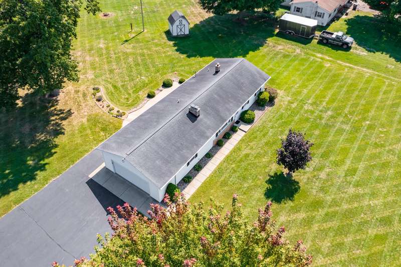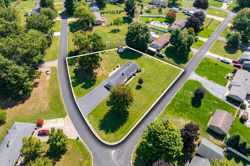 Welcome to this charming ranch on a premier 0.45-acre corner lot. This well-maintained 3 BR, 1.5 BA home offers over 1,700 sq ft of finished living space, complete with an attached 2-car garage and abundant storage. Step into the spacious living room featuring a gas fireplace-perfect for the soon-to-be cool evenings. The open layout connects seamlessly to the dining area and an easy-to-work-in kitchen, creating a comfortable flow for everyday living. The main floor includes all three bedrooms, both baths, a convenient laundry area and a mudroom from the garage. Downstairs, enjoy a large family room with a second fireplace and additional storage-an ideal extension of the home. Outside, enjoy the landscaped yard, patio for gatherings and shed. Recent updates include: carpet in living room and basement (4 yrs), A/C (9 yrs), new well tank, added foam insulation, reverse osmosis and more - see document. A bonus .45-acre lot is for sale for $25K (Parcel ID: 80-18-040-020-10).