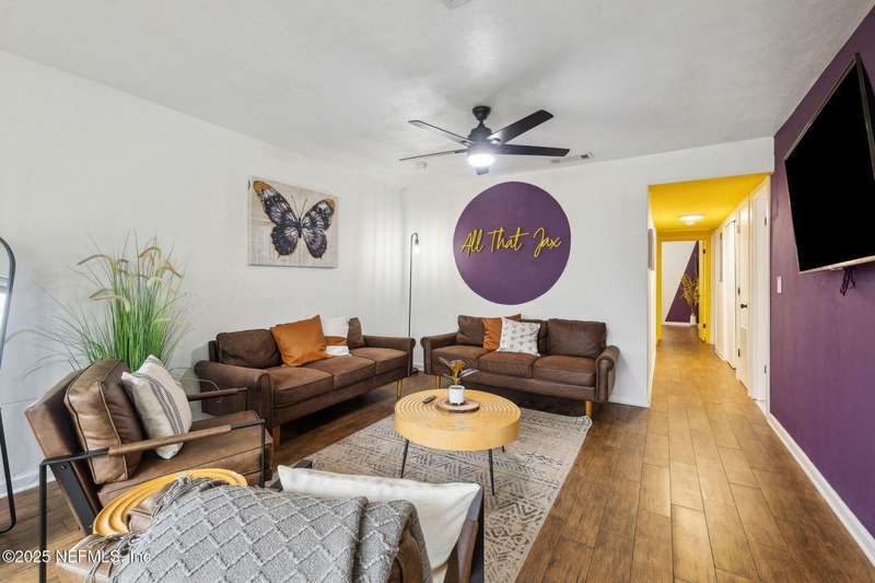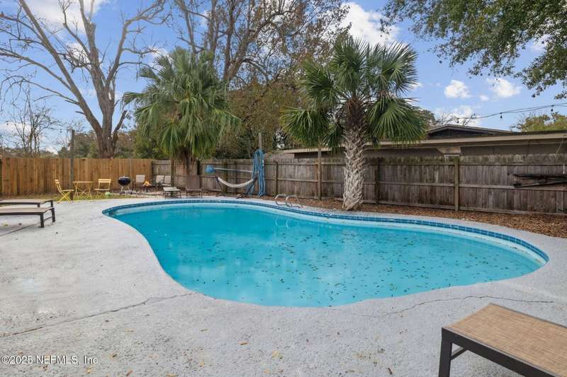 FULLY FURNISHED POOL HOME IN SAN JOSE MANOR! All furniture and appliances included. Great opportunity for a corner lot home with many upgraded features. Updated kitchen with plenty of natural light. Spacious living area to host friends and family. The dining area opens to the family room/bonus room. If you are living in Florida, why not to have a pool to enjoy the warm sunny days. But don't worry, there is also a covered patio to stay away from the sun while part of the fun! Fully fenced backyard for privacy. Front driveway has access to an EV charger. There is an additional circular driveway on the side of the house for additional parking.