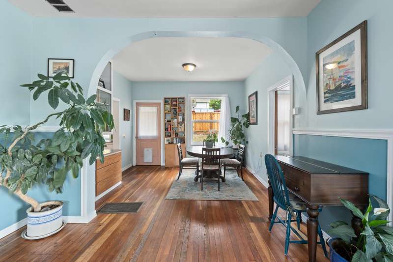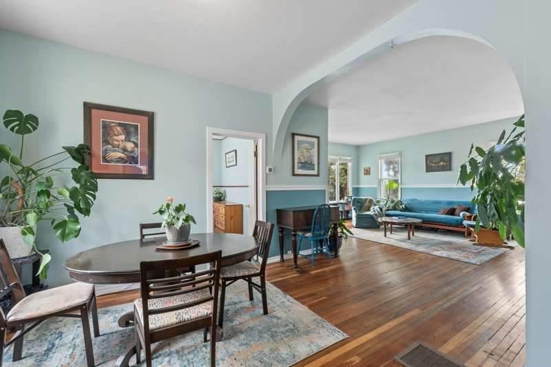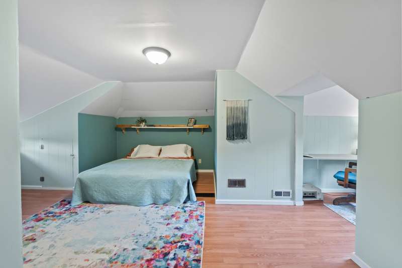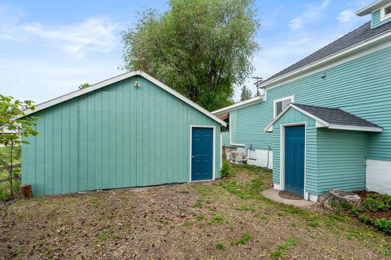 1940s Home with modern updates. Beautifully maintained 1.5 story home with a walkout basement, stunning hardwood floors, spacious family/game room & updated bathroom. Comfort is a priority with a new heat pump, ensuring energy-efficient temperature control year-round. The updated bathroom & plumbing add a fresh touch, bringing both style & peace of mind to daily routines. Enjoy the outdoors with a large, enclosed patio, perfect for relaxing with your morning coffee or entertaining guests. The newly fenced & landscaped yard creates a private & inviting atmosphere, while the dedicated garden space offers raspberries, strawberries, rhubarb, & plum tree. The detached garage with additional storage ensures you have all the space you need for hobbies, tools and seasonal essentials.