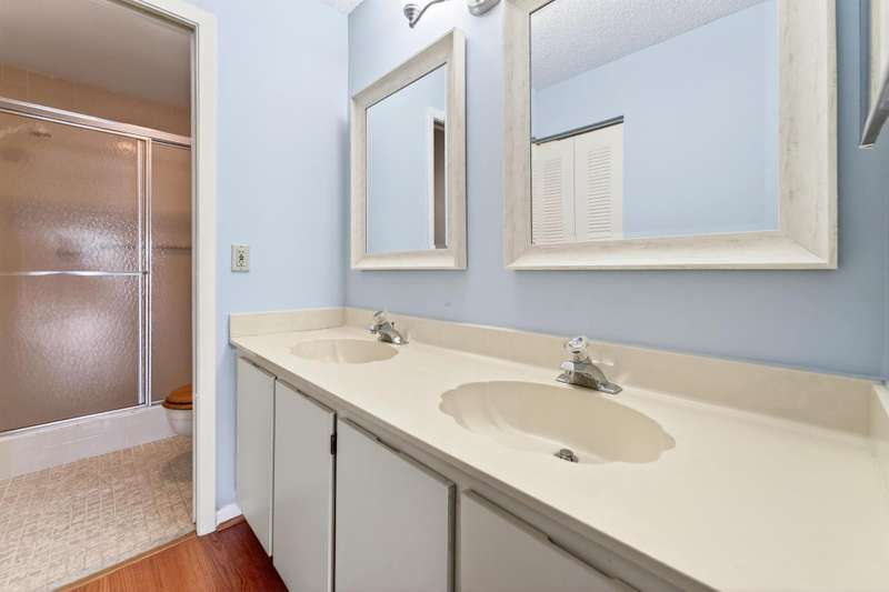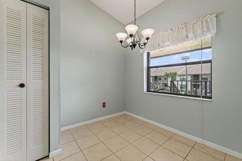 Spectacular 2/2 2nd floor condo with accordion shutters and large screened & tiled patio with storage closet. ***BRAND NEW AC Aug 2025*** Laminate flooring. Spacious kitchen with eat-in area, stainless refrigerator & microwave, awesome backsplash & pass-thru kitchen. Master features large walk-in closet, dual sinks & separate shower. Conveniently located, close to shopping, restaurants, turnpike, airport & beautiful beaches. Welcome to paradise! Move in ready!
