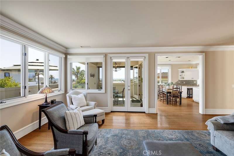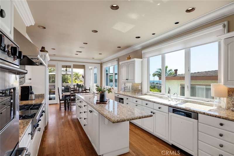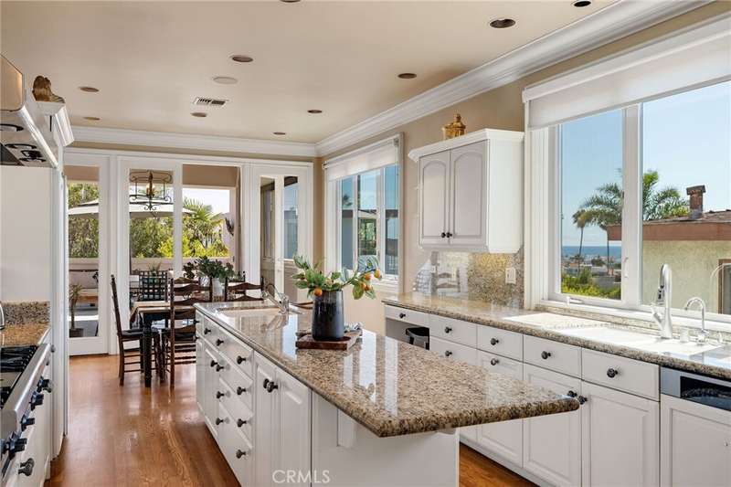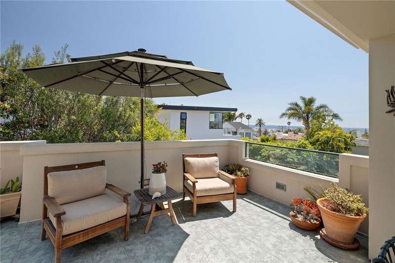 Experience elevated coastal living with panoramic ocean views in this beautifully crafted 3,332 sq ft traditional home, nestled in the highly sought-after Hill Section of Manhattan Beach. Ideally located with just a short stroll to the scenic greenbelt, downtown shops and dining, and the lively Manhattan Beach scene. Soak in sweeping views from the formal living room, kitchen, family room, and expansive wraparound back deck—perfect for relaxing or entertaining. The chef’s kitchen is equipped with granite countertops, custom cabinetry, two sinks, a commercial-grade range, and French doors that open to a private, wind-sheltered patio ideal for alfresco meals and weekend barbecues. The adjacent family room features a cozy fireplace and custom-built-ins, while a separate formal dining room and a second living room with ocean-view balcony and fireplace add warmth and flexibility. A powder bath and small office complete the upstairs. Downstairs, the spacious primary suite includes a jetted tub, walk-in shower, dual vanities, and walk-in closet, along with a private office that opens to the backyard for a breath of fresh air while working from home. A second ensuite bedroom, two additional bedrooms with a Jack-and-Jill bath, laundry room with utility sink, and direct-access two-car garage complete the lower level. Additional highlights include hardwood flooring, dual-pane windows, and thoughtful custom details throughout. Property was designed and equipped to be wheelchair accessible. All just minutes from award-winning schools, boutique shopping, fine dining, and the beach—with easy access to LAX. *Some photos have been virtually staged.*