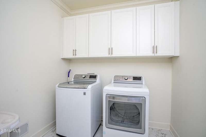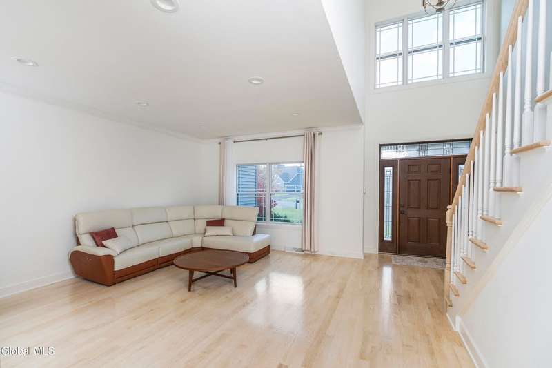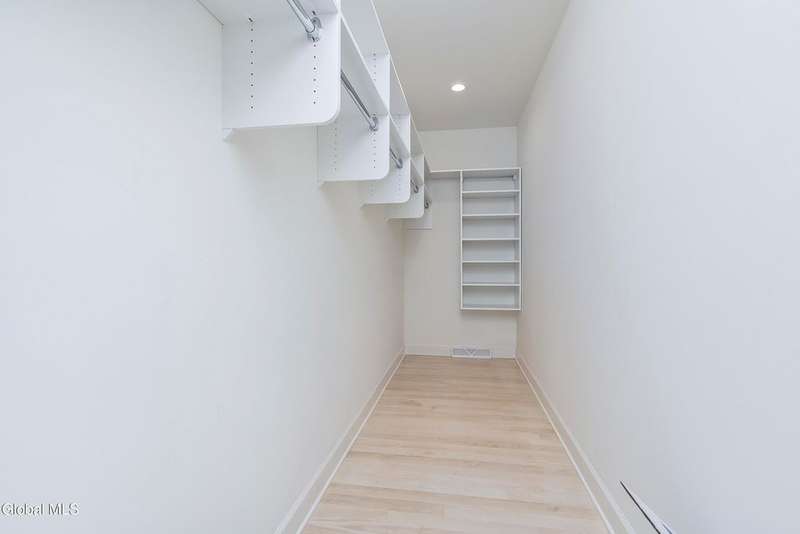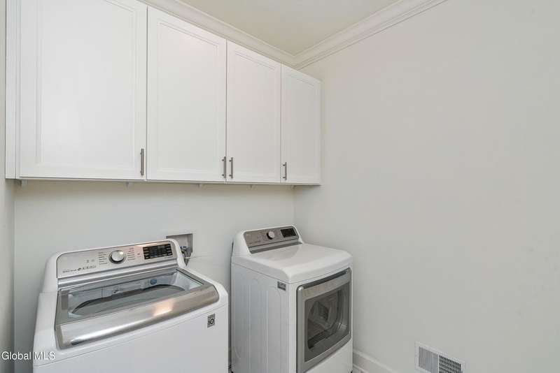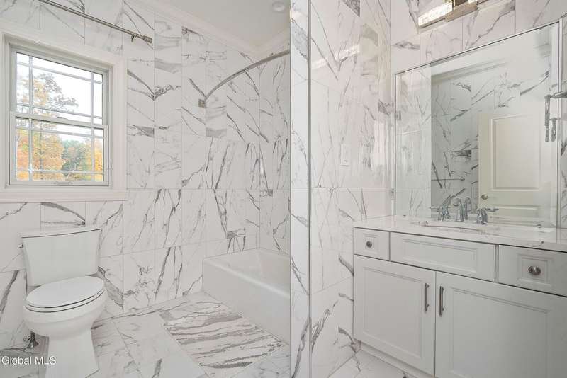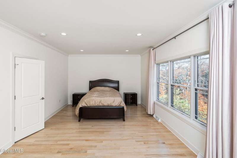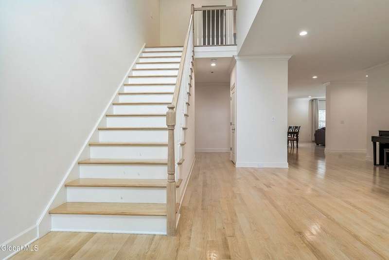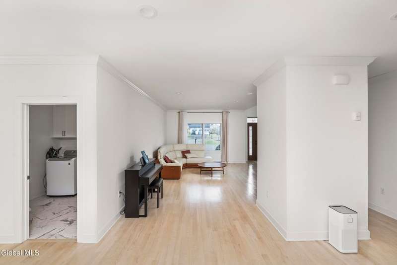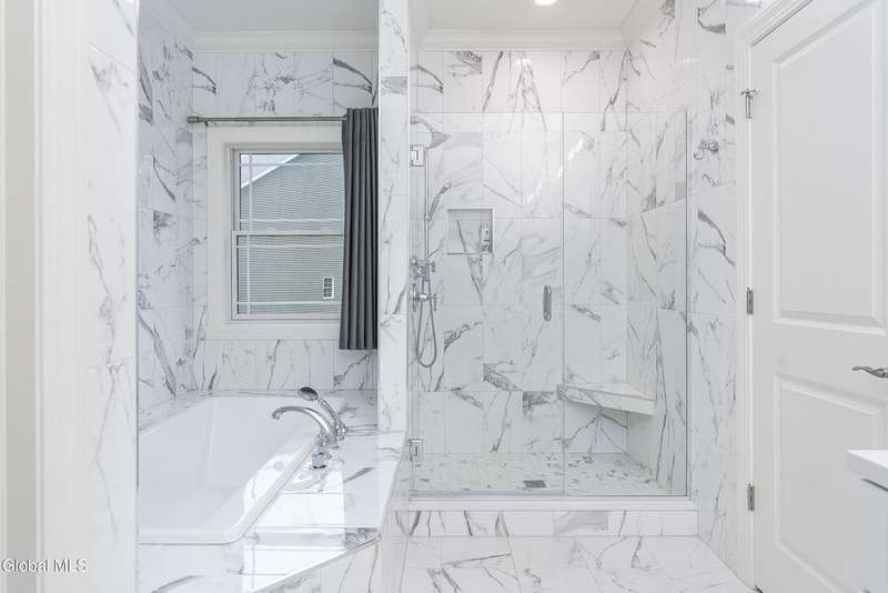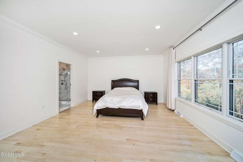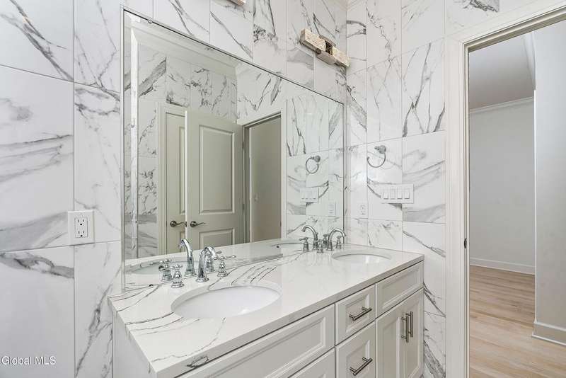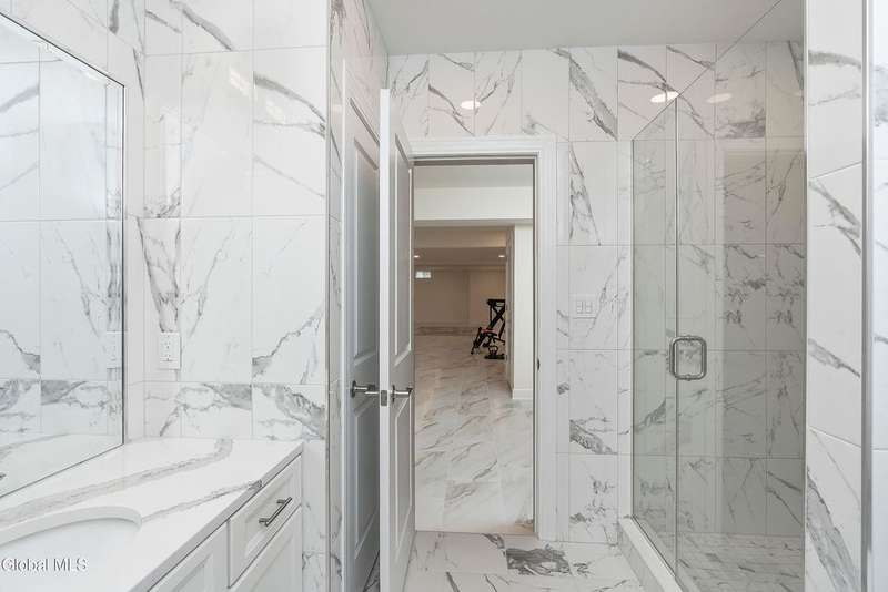 Tucked deep within a quiet Niskayuna cul-de-sac, 11 Gabby Court stands as a statement of craftsmanship and calm sophistication. Designed & custom-built over the course of a year, this home delivers over 5,000 square feet of meticulously curated living space, including a radiant-heated, full walkout lower level finished to the same caliber as the main floors.Every inch has been elevated ? from the white oak Nordic-finished floors, 9' ceilings with crown detail, to the picture-frame windows capturing soft natural light from every angle. The gourmet kitchen showcases Cafe appliances, quartz counters & backsplash, custom cabinetry & gas cooking ? the centerpiece of an open floor plan that transitions seamlessly to an inviting and large Trex deck and paver patio.The first-floor primary suite rivals any luxury spa, with floor-to-ceiling tilework, double vanities, a soaking tub, and custom recessed mirrors ? all enhanced by Kohler fixtures and designer lighting. A secondary first-floor bedroom, oversized mudroom, and first-floor laundry offer rare versatility and ease.Upstairs, two spacious bedrooms feature custom closet systems and share a stunning bath with cast-iron tub and double vanity. The second laundry room continues the thoughtful design that defines the home.The lower level redefines luxury living ? with radiant heated floors throughout, a full bath, office, future sauna, and 9' ceilings. Huge daylight windows bring in warmth and light, while French doors lead to a newly expanded, professionally graded backyard with sprinkler system and $50K in soil work to create a level outdoor retreat ready for a pool or playground.Technical excellence is unmatched: (2) 200-amp service, three-zone HVAC with humidity control, dual sump pumps and whole-home insulation for energy efficiency and peace.This is more than a home ? it's a masterclass in modern construction and elegant living.*some photos virtually staged*