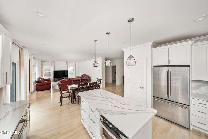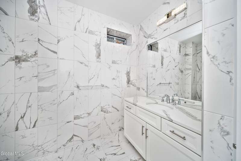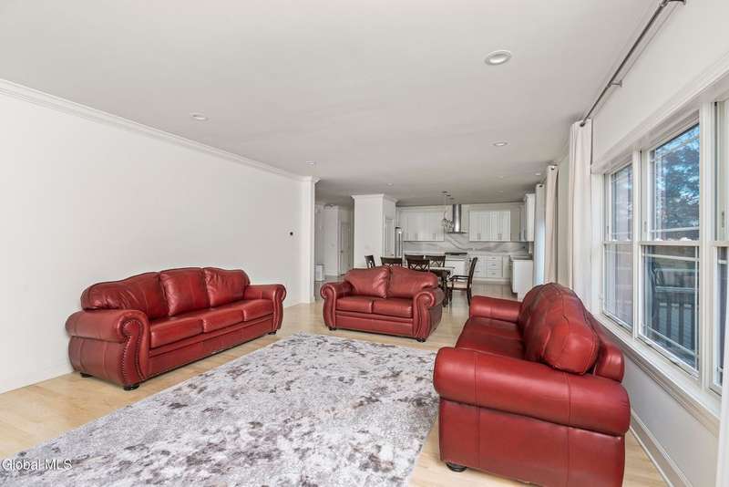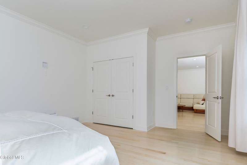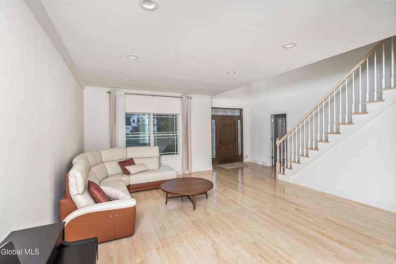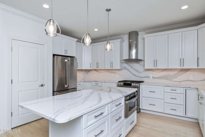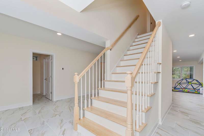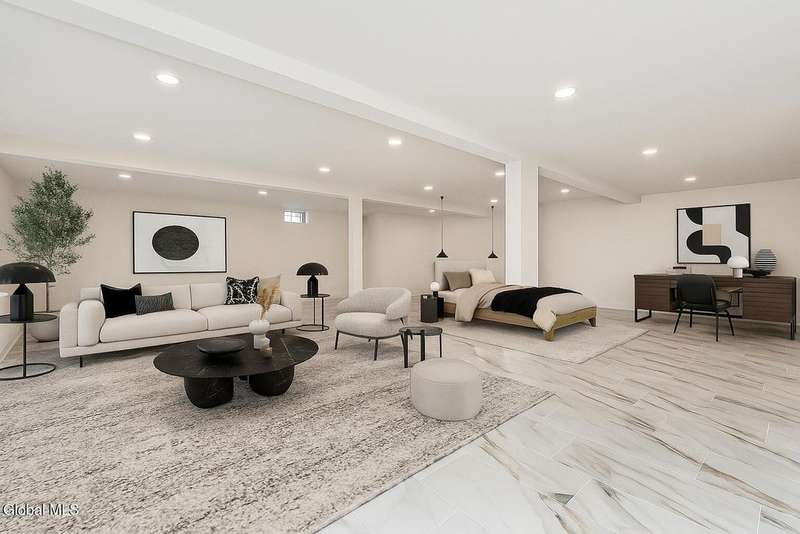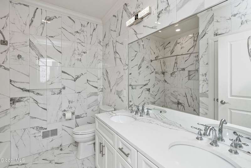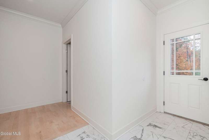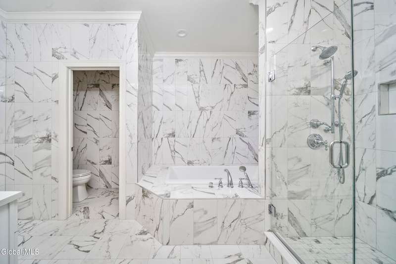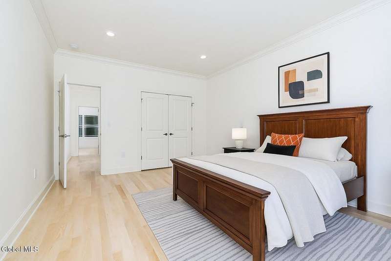 Tucked deep within a quiet Niskayuna cul-de-sac, 11 Gabby Court stands as a statement of craftsmanship and calm sophistication. Designed & custom-built over the course of a year, this home delivers over 5,000 square feet of meticulously curated living space, including a radiant-heated, full walkout lower level finished to the same caliber as the main floors.Every inch has been elevated ? from the white oak Nordic-finished floors, 9' ceilings with crown detail, to the picture-frame windows capturing soft natural light from every angle. The gourmet kitchen showcases Cafe appliances, quartz counters & backsplash, custom cabinetry & gas cooking ? the centerpiece of an open floor plan that transitions seamlessly to an inviting and large Trex deck and paver patio.The first-floor primary suite rivals any luxury spa, with floor-to-ceiling tilework, double vanities, a soaking tub, and custom recessed mirrors ? all enhanced by Kohler fixtures and designer lighting. A secondary first-floor bedroom, oversized mudroom, and first-floor laundry offer rare versatility and ease.Upstairs, two spacious bedrooms feature custom closet systems and share a stunning bath with cast-iron tub and double vanity. The second laundry room continues the thoughtful design that defines the home.The lower level redefines luxury living ? with radiant heated floors throughout, a full bath, office, future sauna, and 9' ceilings. Huge daylight windows bring in warmth and light, while French doors lead to a newly expanded, professionally graded backyard with sprinkler system and $50K in soil work to create a level outdoor retreat ready for a pool or playground.Technical excellence is unmatched: (2) 200-amp service, three-zone HVAC with humidity control, dual sump pumps and whole-home insulation for energy efficiency and peace.This is more than a home ? it's a masterclass in modern construction and elegant living.*some photos virtually staged*
