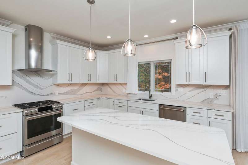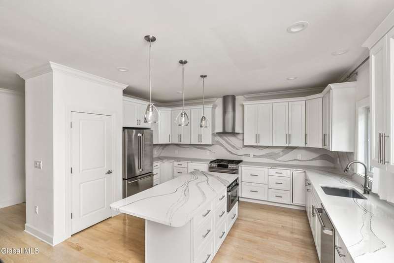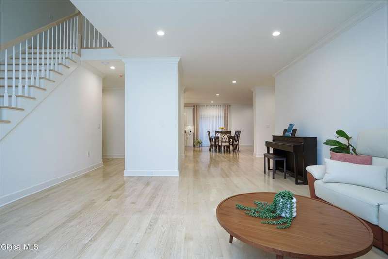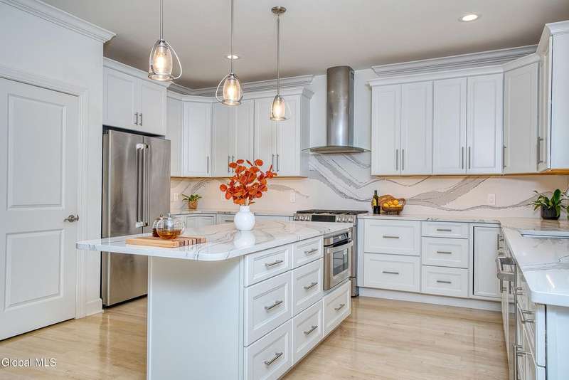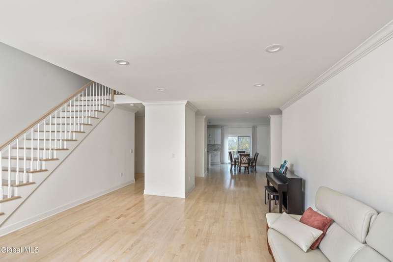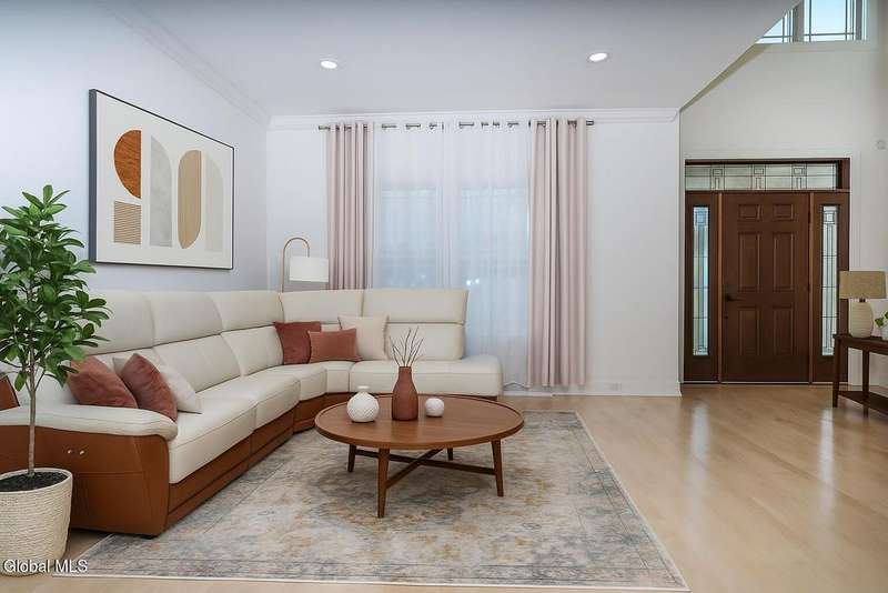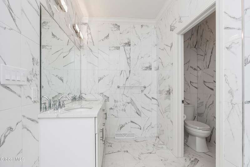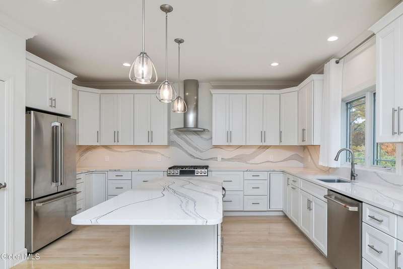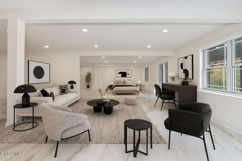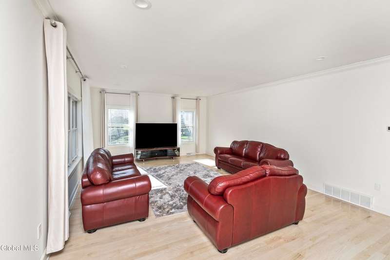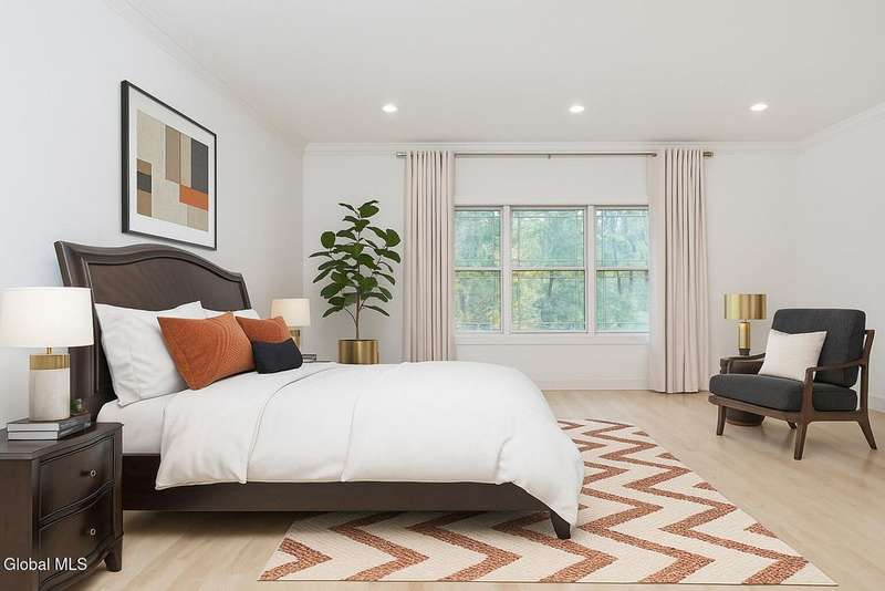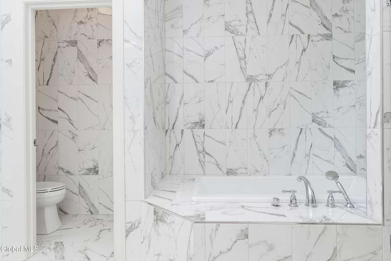Tucked deep within a quiet Niskayuna cul-de-sac, 11 Gabby Court stands as a statement of craftsmanship and calm sophistication. Designed & custom-built over the course of a year, this home delivers over 5,000 square feet of meticulously curated living space, including a radiant-heated, full walkout lower level finished to the same caliber as the main floors.Every inch has been elevated ? from the white oak Nordic-finished floors, 9' ceilings with crown detail, to the picture-frame windows capturing soft natural light from every angle. The gourmet kitchen showcases Cafe appliances, quartz counters & backsplash, custom cabinetry & gas cooking ? the centerpiece of an open floor plan that transitions seamlessly to an inviting and large Trex deck and paver patio.The first-floor primary suite rivals any luxury spa, with floor-to-ceiling tilework, double vanities, a soaking tub, and custom recessed mirrors ? all enhanced by Kohler fixtures and designer lighting. A secondary first-floor bedroom, oversized mudroom, and first-floor laundry offer rare versatility and ease.Upstairs, two spacious bedrooms feature custom closet systems and share a stunning bath with cast-iron tub and double vanity. The second laundry room continues the thoughtful design that defines the home.The lower level redefines luxury living ? with radiant heated floors throughout, a full bath, office, future sauna, and 9' ceilings. Huge daylight windows bring in warmth and light, while French doors lead to a newly expanded, professionally graded backyard with sprinkler system and $50K in soil work to create a level outdoor retreat ready for a pool or playground.Technical excellence is unmatched: (2) 200-amp service, three-zone HVAC with humidity control, dual sump pumps and whole-home insulation for energy efficiency and peace.This is more than a home ? it's a masterclass in modern construction and elegant living.*some photos virtually staged*