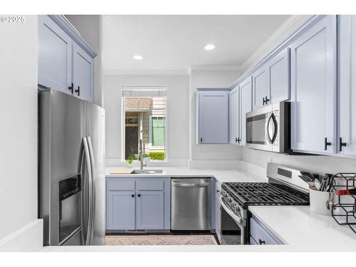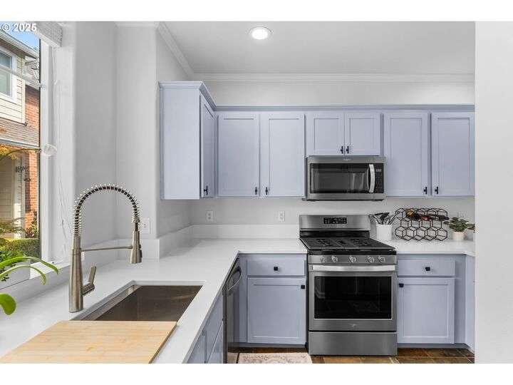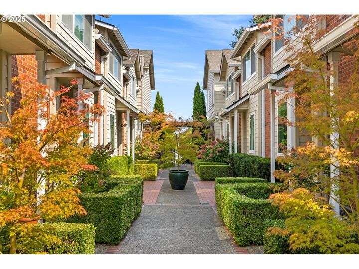 Live in the heart of downtown Lake Oswego's First Addition neighborhood! Charming + lush courtyard greets guests with beautiful landscaping. Light & bright interior features 9' high ceilings, great room concept on main level with Brazilian cherry wood floors + crown molding. Remodeled kitchen with stainless steel appliances, quartz counter tops & eat bar. Living room with cozy gas fireplace. Sliding glass door opens to fenced & oversized private patio. Upstairs you will find 2 bedrooms connected by full bathroom with 2 sink vanity, excellent storage & shower+tub combo. Detached garage with attic storage & opener . This 16 unit complex is a special combination of a low maintenance, peaceful retreat in the heart of one of the most sought-after neighborhoods. Stroll to shops, grocery, library, post office, farmer's market, theater, dining, cafes & parks. Walk Score 94 + Bike Score 69!