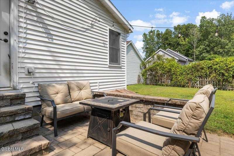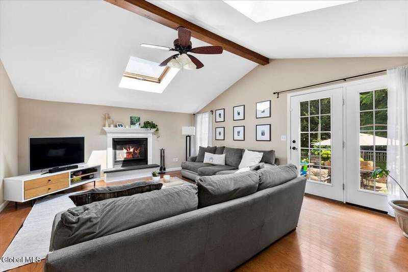 Showings start at Open House 9/27 & 9/28, 12-3.Stunning colonial home in Kings Mills Estates blends classic charm and modern updates. The updated kitchen is outfitted with stainless steel appliances - including a gas range - and framed by white cabinetry and ample workspace. The formal dining room is highlighted by rich hardwood floors, neutral paint and a contemporary chandelier. The expansive great room impresses with cathedral ceilings, naturally lit by two skylights and accented by a decorative wood beam. Enjoy the warmth of a cozy fireplace with a raised hearth and classic wood mantle, while an atrium door opens to the outside. Step outside to a custom stone patio overlooking a spacious backyard that backs up to a serene, wooded area - your own private retreat. New Furnace 7/2025, Convenient Location & Low Wilton Taxes!