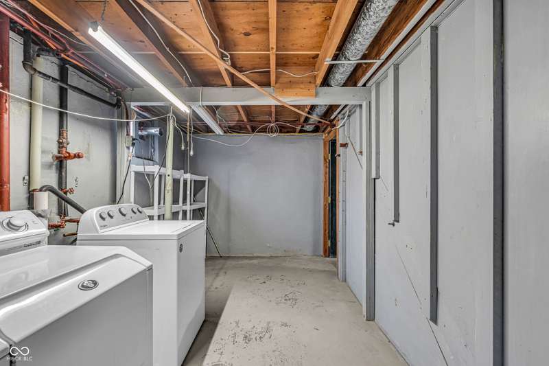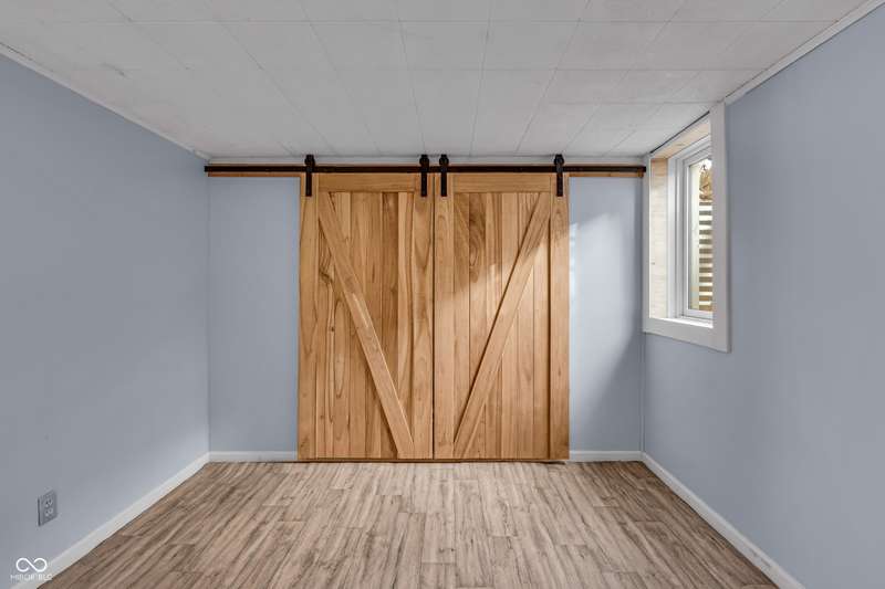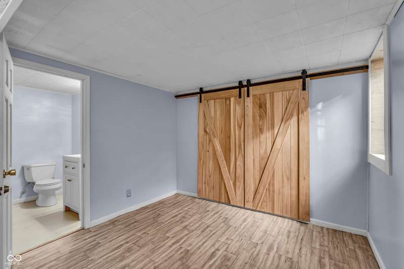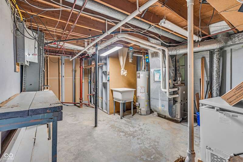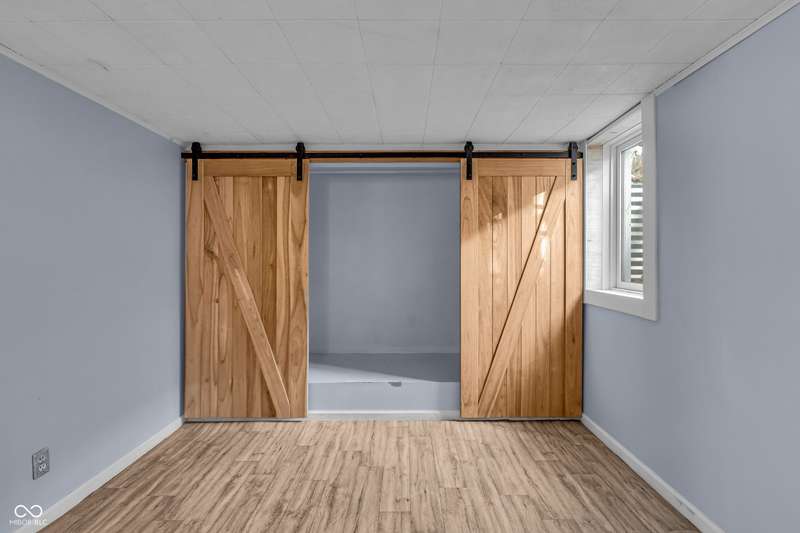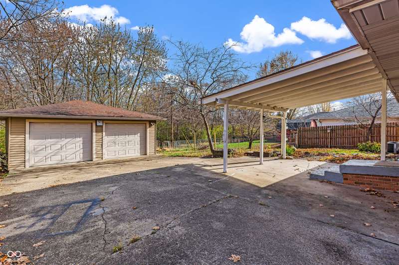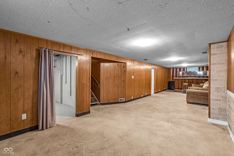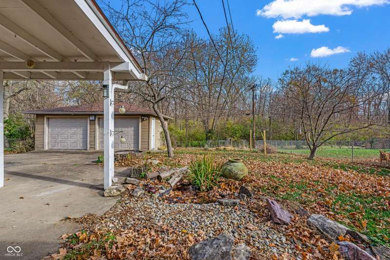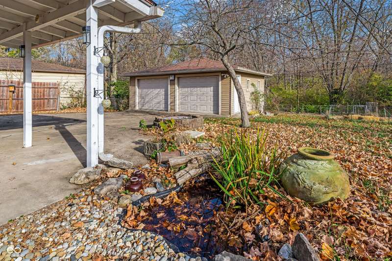 This charming brick and stone ranch home in Beech Grove offers a perfect blend of character and modern updates. Inside, you'll find four spacious bedrooms, gleaming hardwood floors, and fresh paint throughout. The remodeled kitchen features new 2025 EnergyStar stainless steel appliances, including a dishwasher and refrigerator, complemented by updated cabinets, stove, and microwave. A new roof was installed in 2016, adding both value and peace of mind. The finished basement provides a wonderful recreational space with decorative concrete floors, a bar, and a wet sink, while the large laundry and utility room includes an extra freezer and a convenient laundry chute. Outdoors, the expansive fenced backyard is ideal for entertaining with a covered patio, a tranquil fishpond, and garden space, along with a two-car garage offering extra storage and an impressive 12x16 shed with 12-foot height. Recent upgrades such as a sewer line replacement in 2021, vinyl windows installed in 2005, a new HVAC system in 2022, and gutter guards added in 2024 ensure lasting comfort. Located just a short 10-minute walk to downtown Beech Grove and steps from the scenic Franciscan Trail, this home also provides quick access to major highways, making commuting and travel convenient. With its thoughtful updates, inviting spaces, and prime location, this property is truly move-in ready.