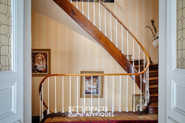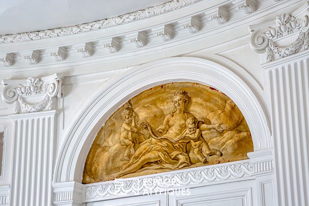 On the first floor, the decor flourishes in all its richness: a landing leads to a master suite with its bathroom, a second bedroom, a landing, and a refined living room adorned with stucco, moldings, and period paintings, delicate testaments to the 18th-century art of living.
