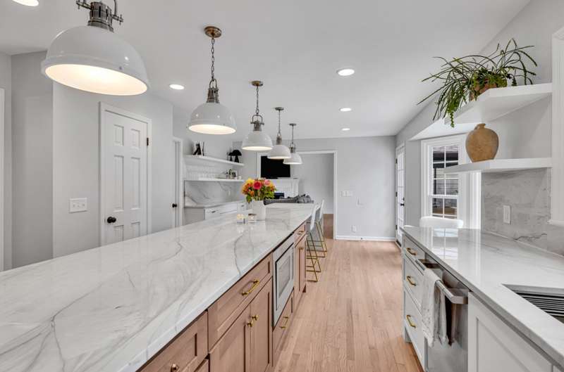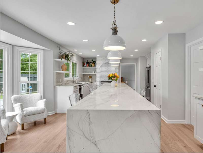 This beautifully renovated home (2021) sits on over an acre in one of Brentwood's most sought-after developments. From the moment you step inside, you'll be captivated by the show-stopping 17-foot quartzite waterfall island, complemented by Fulgor-Milano appliances and sleek, modern finishes throughout.