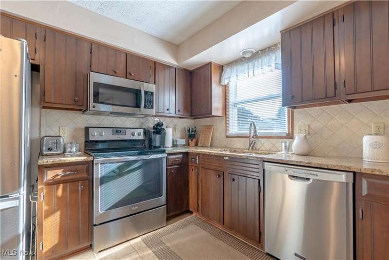 Welcome to this beautifully updated 4-level split located in the desirable Jackson School District. Offering 3-4 bedrooms and 2.5 baths, this home provides flexible living space to suit your needs. The first-level den can easily serve as a fourth bedroom or a private office, with direct access to the attached double garage. The heart of the home is the updated eat-in kitchen featuring rich walnut cabinetry, granite countertops, and stainless steel appliances. Enter from the kitchen into the Dining Room which flows into the Living Room with crown molding, and a large picture window. The spacious family room also includes a classic brick fireplace, perfect for cozy evenings. Upstairs, the primary suite offers a private bath with granite counters and a walk-in shower, while two additional bedrooms share a beautifully updated bath. The basement includes laundry facilities and extra storage space. Enjoy outdoor living with a welcoming front porch and a private backyard ideal for relaxing or entertaining. Additional highlights include newer windows, a 10-year-old electric HVAC system (furnace, central air, and heat pump), and security system for peace of mind. Conveniently located near Jackson schools, Belden Village shopping and restaurants. This home combines comfort, style, and accessibility. Don't miss your chance to make it yours.