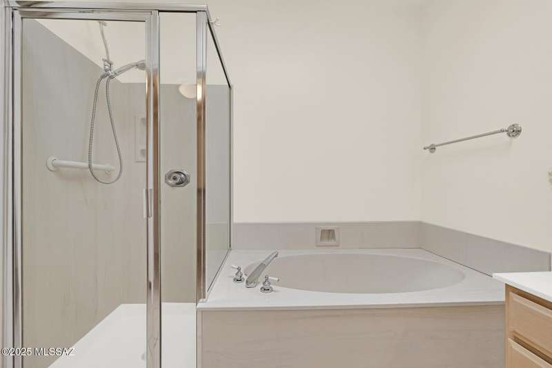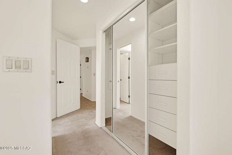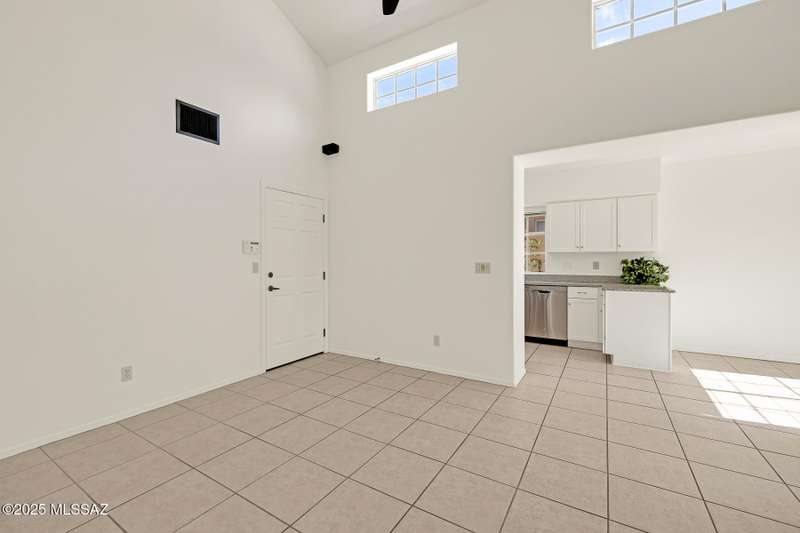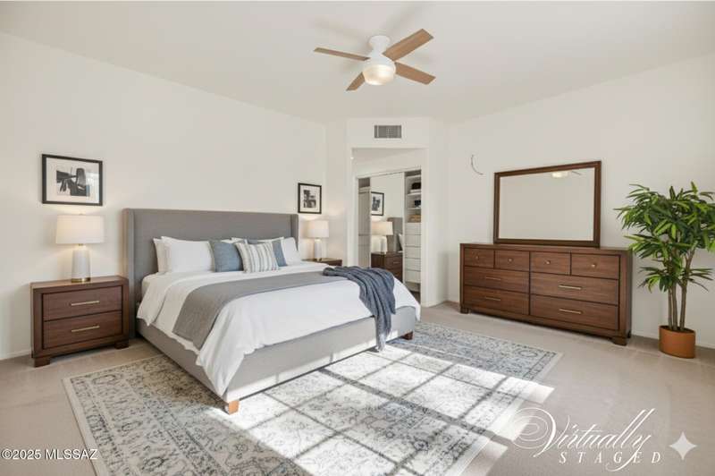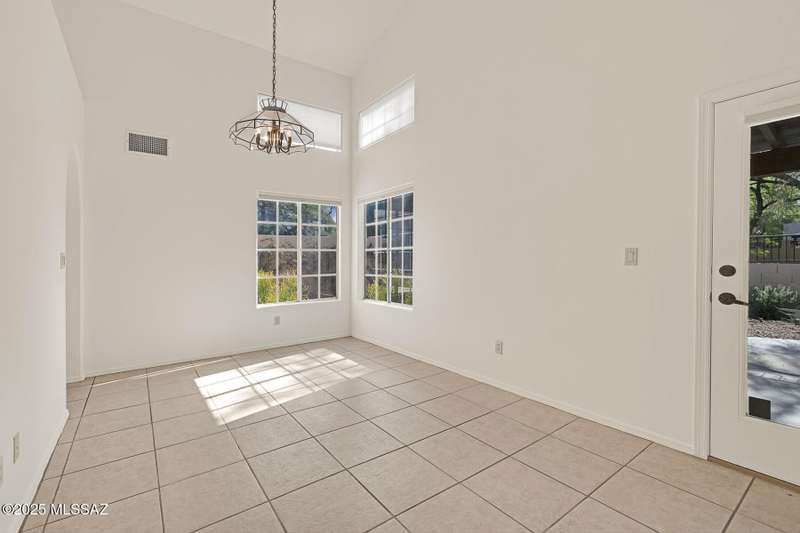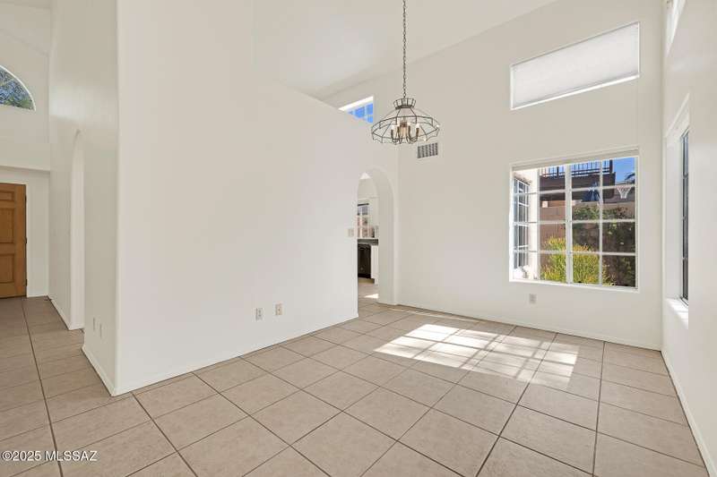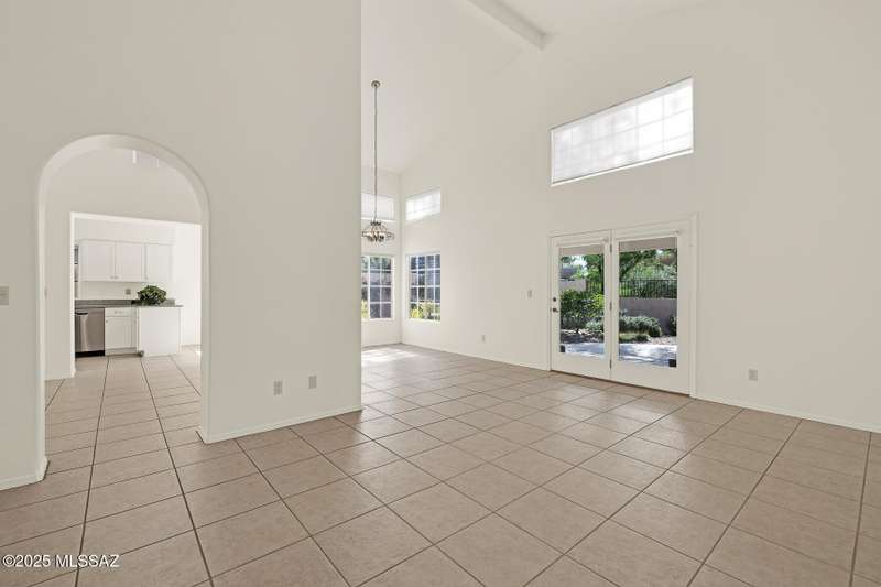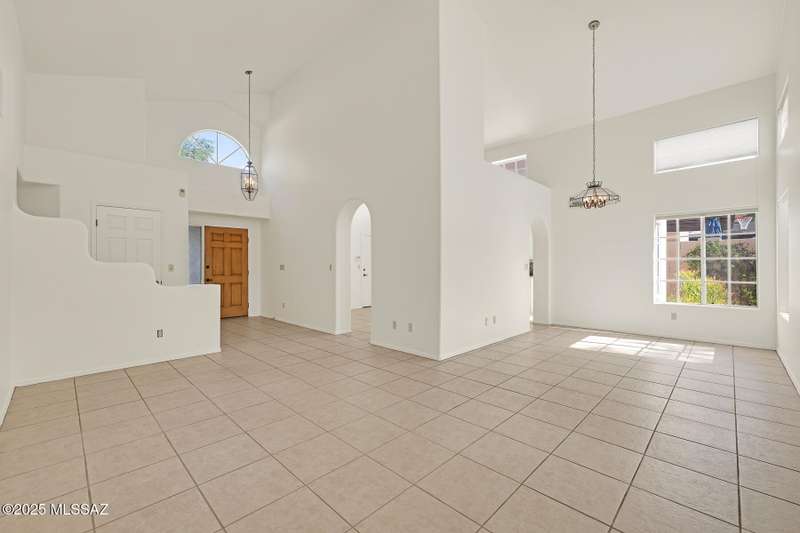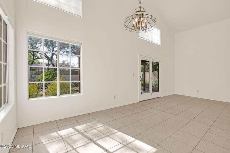 Homes in this neighborhood of Rancho Morado are rarely on the market, Quality A. F. Sterling home in enclave of pristine north central neighborhood steps away from the community pool, Riverwalk, UA, UMC, shopping and restaurants. Updated Kitchen w/ white cabinets granite counter tops, & stainless appliances. Cathedral ceilings, lots of windows for natural light, cozy gas/wood fireplace in family rm/den area, generous living room and formal dinning rm all on one level.Large primary with 2 closets. 1 closet is a walk-in, separate garden tub and walk-in shower. Private covered patio backs to lush common area, Freshly painted interior and garage. Newer Roof, Move in ready. Great location!Copper Pipes and Mountain View from 2nd bedroom/office.