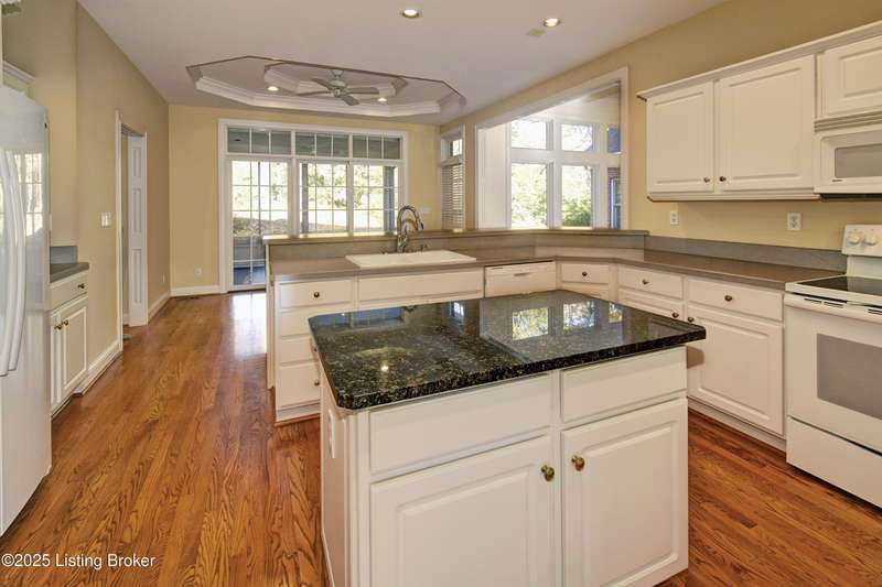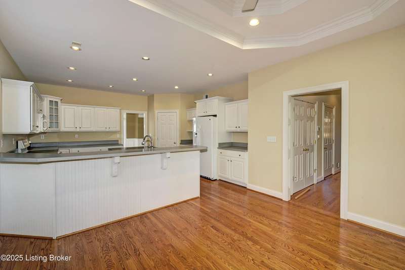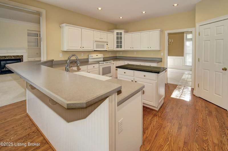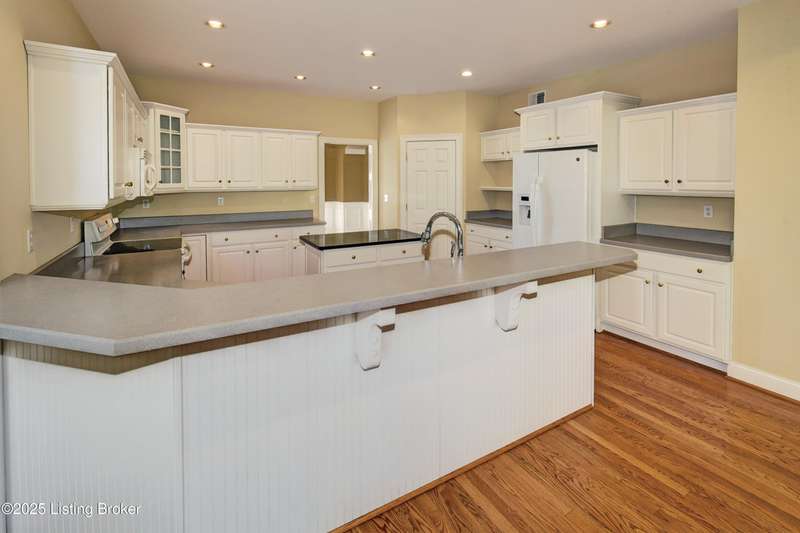 This outstanding one owner Custom Ranch Home was built by the Buttoroff Company and is located in the Glen Oaks Subdivision and backs up to the first hole of the Championship Golf Course. Four bedrooms and 4.5 Baths this home has a partially finished walkout basement that includes 2 bedrooms and each has its own full bath and a game room between. On the main level is a formal dining room, a large gourmet kitchen with breakfast room., large family room with gas fireplace and book shelving, an office (also could be a 5th Bedroom) , the private Owner's suite and the 4th bedroom and full bath. The laundry room, Sewing/Hobby room and the half bath are all in the back hall at the exterior side entrance and garage entry. There is a screened porch on the rear behind the kitchen/ breakfast room overlooking the ree's and the private back yard. Excellent Prospect Oldham County Location and very convenient to the Springhurst/ East End area. The Gene Snyder Freeway, and Interstate 71 are just minutes away.