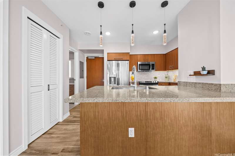 Welcome to Keauhou Place, where contemporary design meets unbeatable convenience in the heart of vibrant Kaka'ako. This 2 bedroom 2 bathroom ocean facing residence offers stunning views of Kewalo Basin surf from your private lanai and main living areas - making every sunrise the best way to start your day! Step outside your door into one of Honolulu's most exciting neighborhoods. With grocery stores, health and wellness vendors, fitness studios, and popular restaurants just an elevator ride away, your daily routine becomes effortless. Enjoy the energy of the Kaka'ako Night Market and neighborhood block parties. This home offers exceptional value in the sought after Kaka'ako area - where urban convenience meets island living. Please visit our 1st open house, Sunday November 16, 2025 from 2-5pm.
