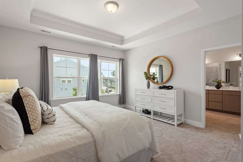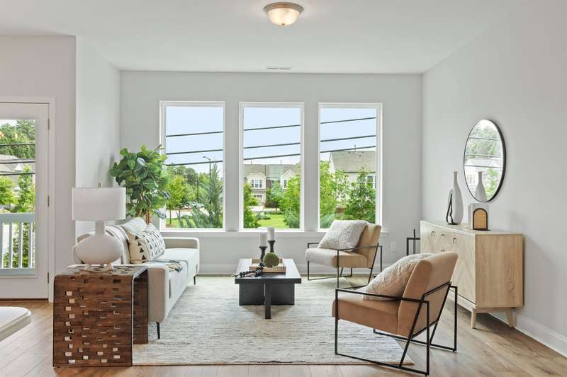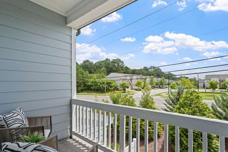 Step into comfort and style in this thoughtfully designed 3-bedroom, 2.5-bath townhome with a 2-car garage just minutes from UNC, Duke, RTP, and Southpoint Mall. Built in 2022 by David Weekley Homes, the smart layout features two bedrooms and a full bath on the first level, offering flexibility for guests, a home office, or additional living space. Upstairs, you'll find the main living area and a spacious primary suite. Tall windows in the living room invite soft morning light, creating a peaceful start to your day. Enjoy fresh air on both the ground-level patio and the balcony off the living space. The oversized, spa-inspired shower in the primary suite adds a touch of luxury to everyday life. Move-in ready and beautifully maintained, this home offers the perfect mix of modern living and convenience in a vibrant Durham location.