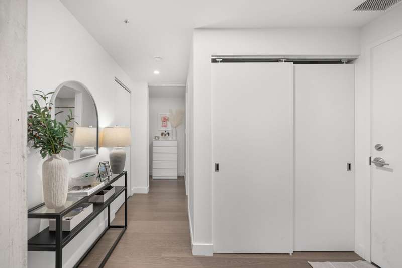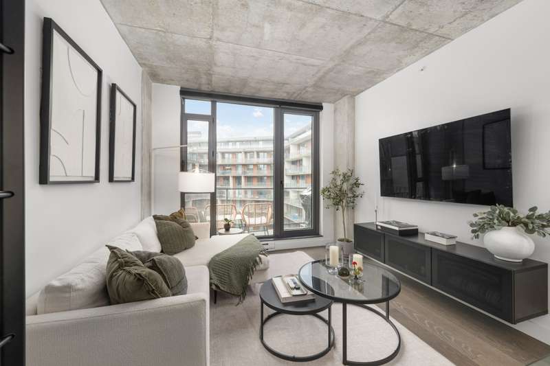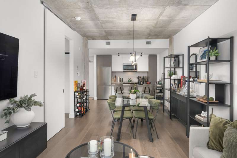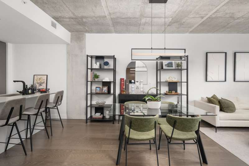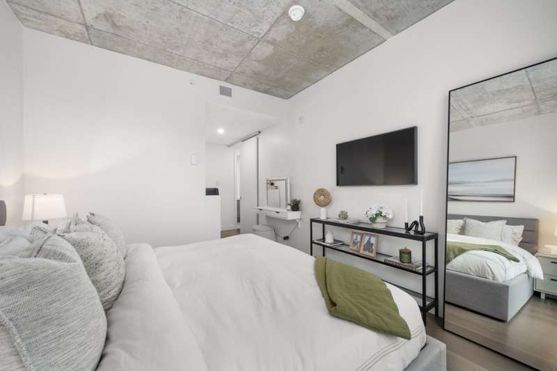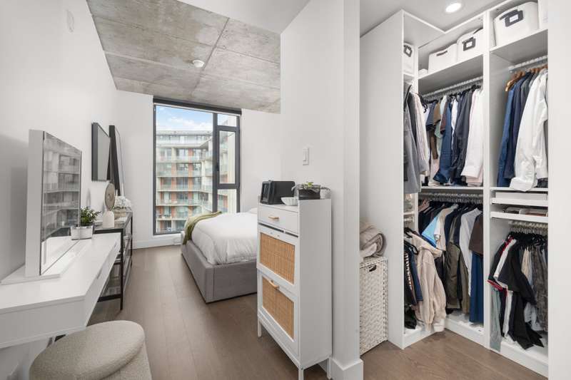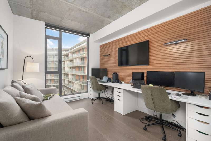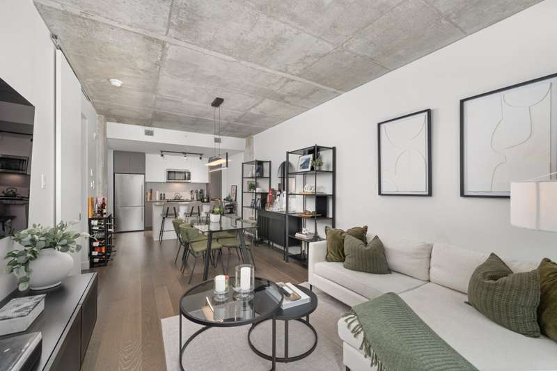 Welcome to Cite Midtown - This professionally designed condo features a spacious 2-bedroom, 2-bathroom layout, where every detail has been thoughtfully crafted to maximize comfort and functionality. Expansive floor-to-ceiling windows fill the living space with natural light, complemented by electric blinds. The primary bedroom includes a generous walk-in closet leading to an ensuite bathroom, while the second bedroom is currently configured as a stylish office and guest space. Enjoy central heating and air conditioning. The unit comes fully equipped with six appliances, indoor parking, and a storage locker.