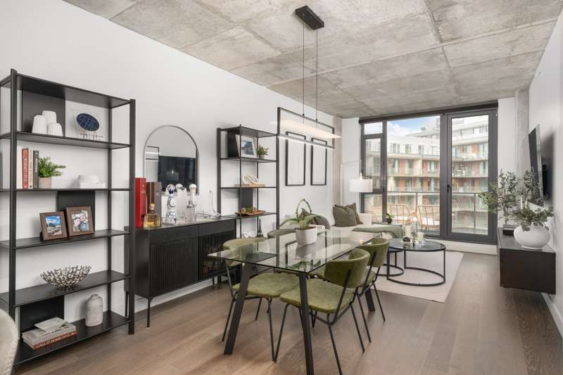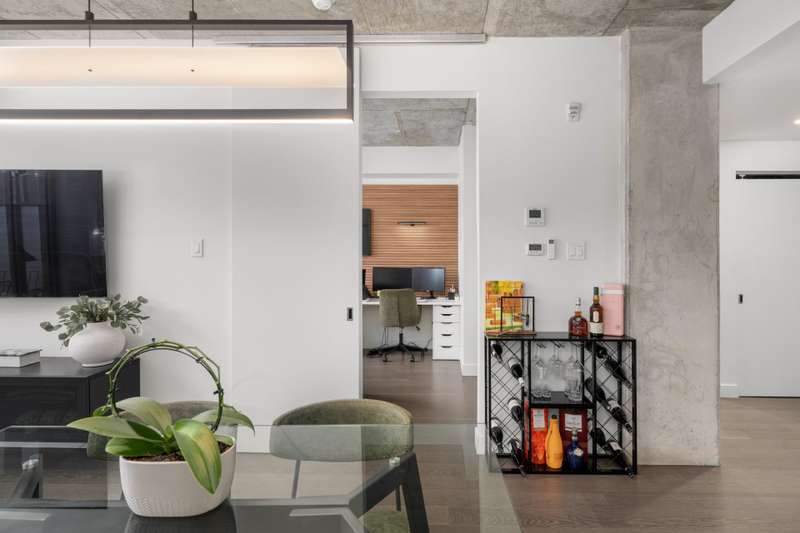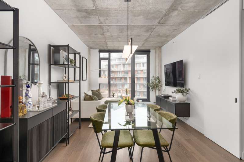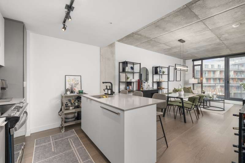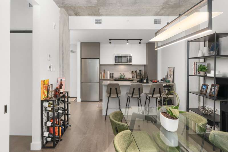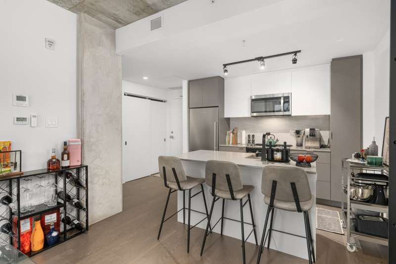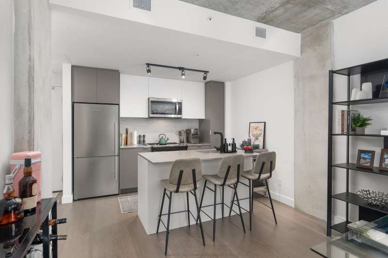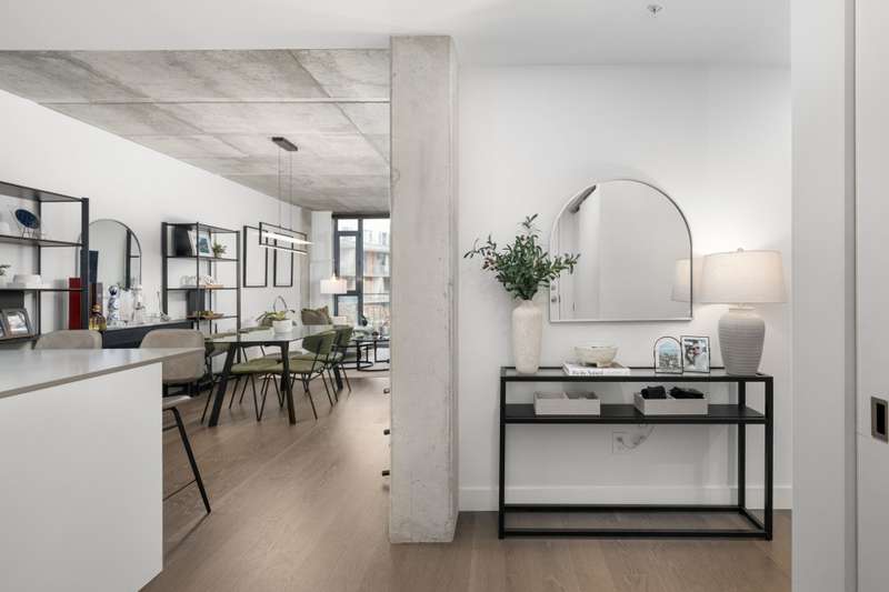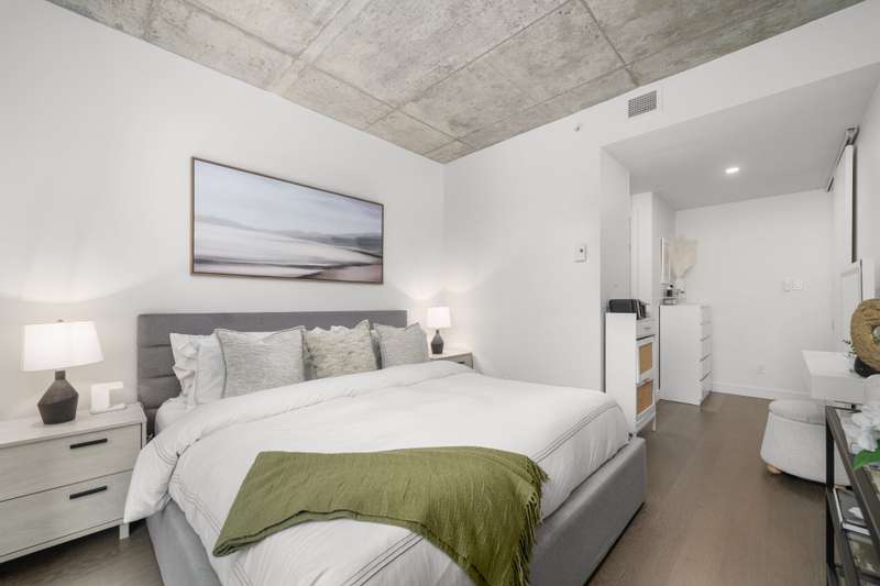Welcome to Cite Midtown - This professionally designed condo features a spacious 2-bedroom, 2-bathroom layout, where every detail has been thoughtfully crafted to maximize comfort and functionality. Expansive floor-to-ceiling windows fill the living space with natural light, complemented by electric blinds. The primary bedroom includes a generous walk-in closet leading to an ensuite bathroom, while the second bedroom is currently configured as a stylish office and guest space. Enjoy central heating and air conditioning. The unit comes fully equipped with six appliances, indoor parking, and a storage locker.