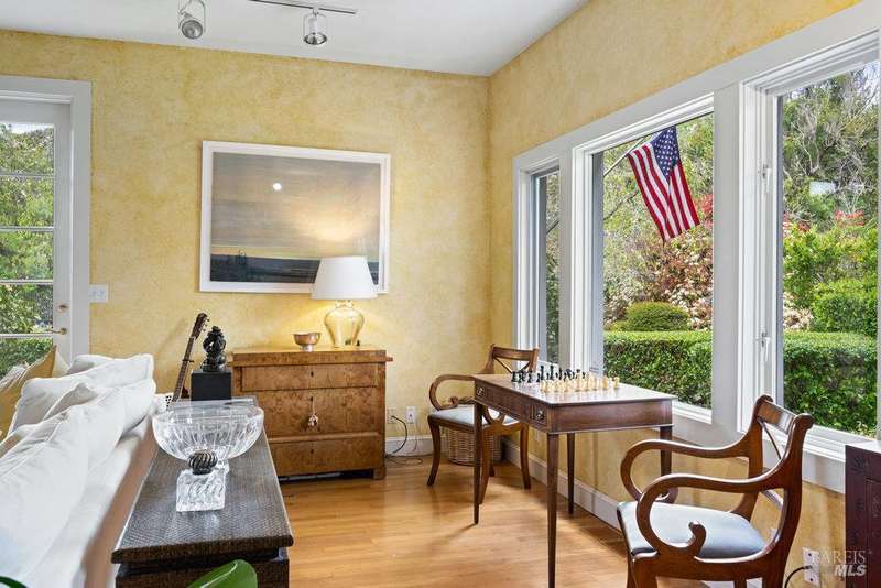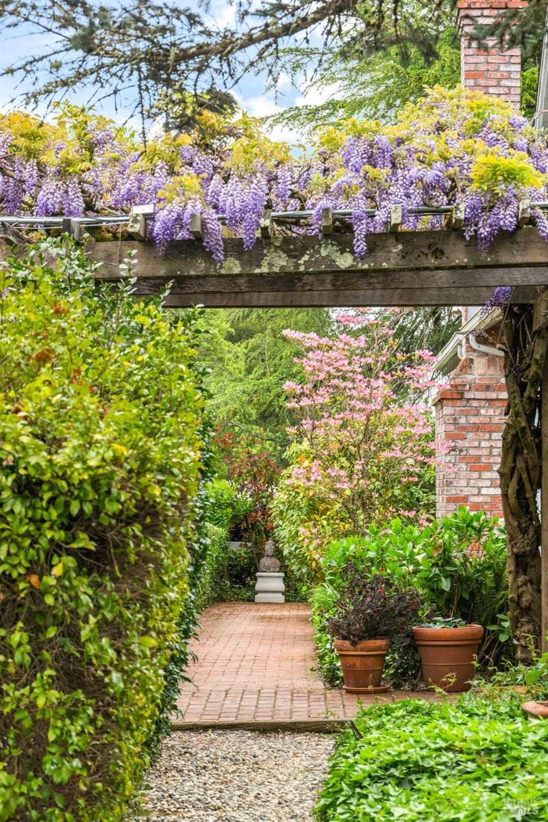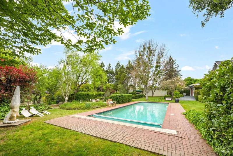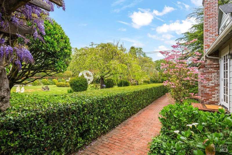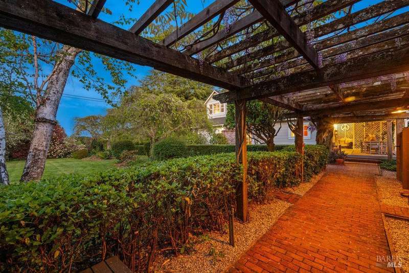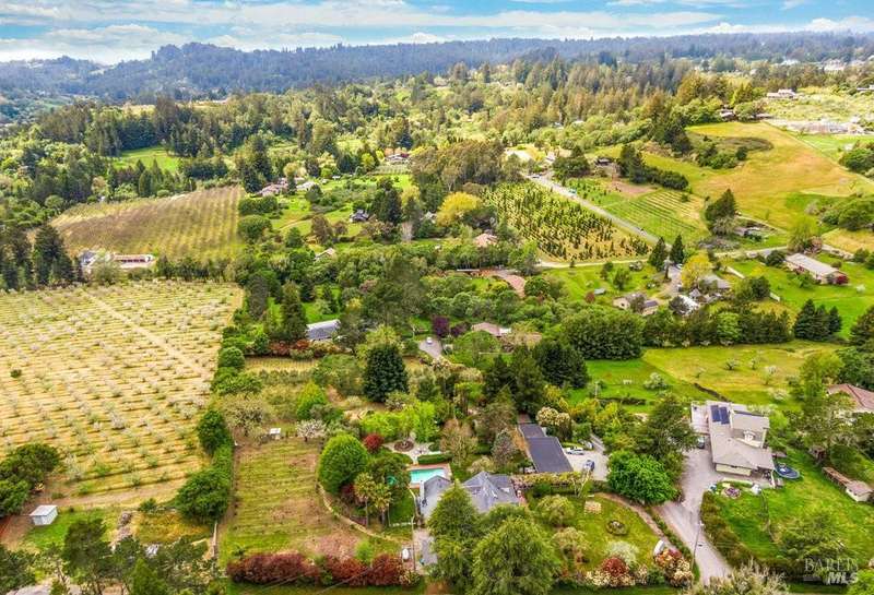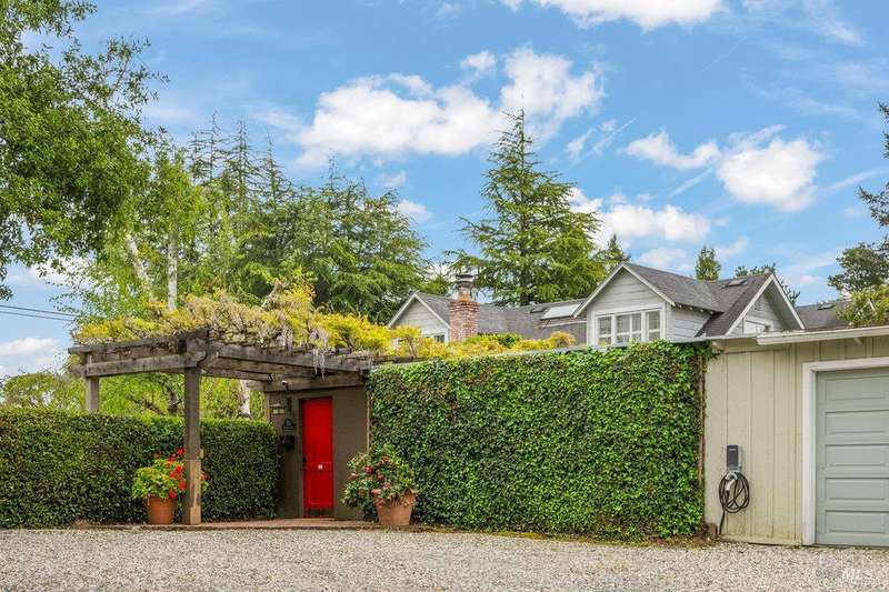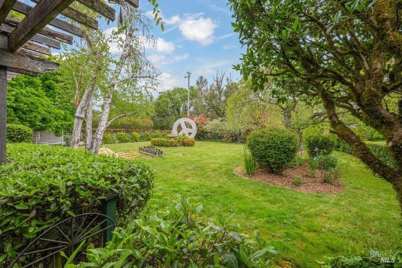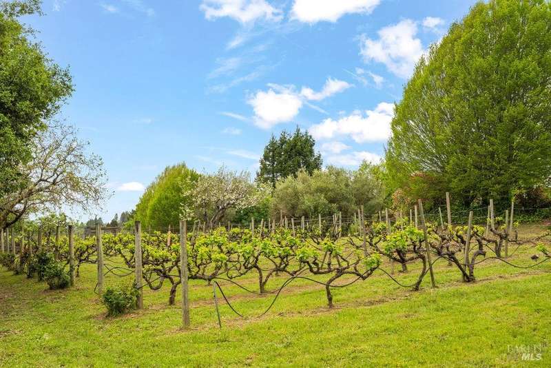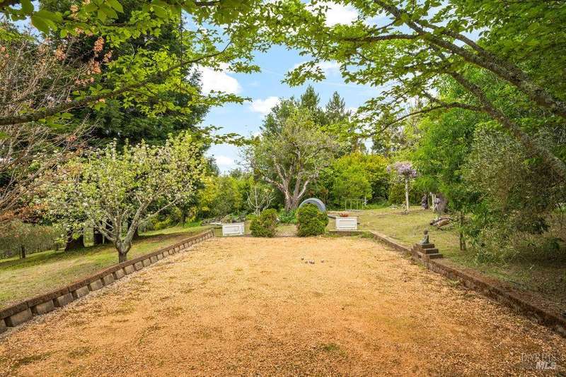 Discover the timeless charm of this enchanting, west-facing Sonoma County estate, built in 1916 and thoughtfully updated. Located just minutes from downtown Sebastopol, the 3,100 sq. ft. residence offers 3 bedrooms, 3.5 baths, and a versatile loft for office or studio use. With vintage woodwork, three fireplaces, and classic architecture blended with modern comforts, the home balances history and contemporary living. Set on 2.39 lush acres, the property features mature, producing olive trees and flourishing grapevines ideal for a personal vineyard or artisanal olive oil. As fall arrives in Sebastopol, the harvest season brings vibrant colors and abundant grapes and olives to gather. Enjoy the sparkling pool, bocce court, and serene views of this storybook retreat. A detached ADU provides guest or rental flexibility, while the two-car garage and workshop offer ample space for hobbies and projects. This estate beautifully captures the spirit and grace of West County living.