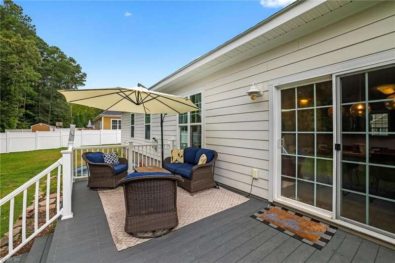 Welcome to this beautifully updated 4 bdr. ranch. It has a welcoming front porch & open floor plan. The open foyer greets you as you enter, flex room with French doors is perfect for office, dining room, playroom etc. The family room w/FP & vaulted ceilings flows seamlessly to the eat in kitchen that has large breakfast bar, granite counter tops, SS appliances, pantry, and doors that leads out back. Enjoy the peaceful .38 acre wooded lot from your back yard, complete with a deck for entertaining. Primary suite has bath w/ double bowl vanity, double shower, garden tub, water closet, linen closet & WIC with custom shelving. 2 additional BR's down and laundry room. Large ROG adds wonderful flexibility. This home offers stylish modern finishes and tasteful decor throughout. With its move-in ready condition and versatile spaces, this home perfectly combines comfort functionality & charm. Please note the showing instructions for times.